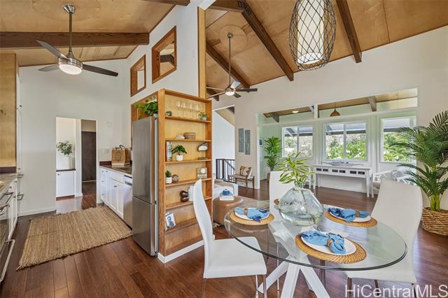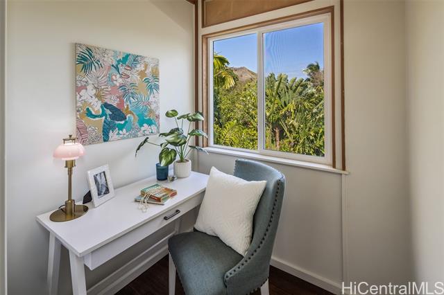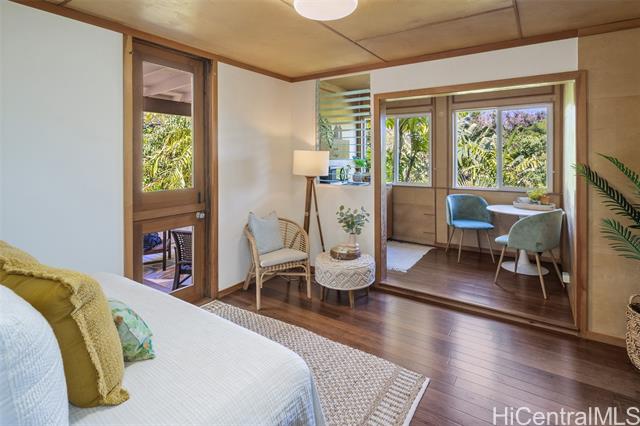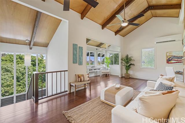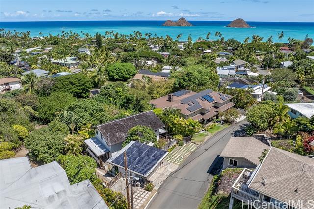 - Gracious island living in this thoughtfully designed residence. Privacy and a deep connection to nature come together creating your own sanctuary. Rarely do homes of this distinction become available. This 4-bedroom, 3 bath residence features a flexible floor plan with the primary suite on the main level. The second level offers an additional spacious living area, along with two wet bars, ideal for entertaining or multi-generational living. On the ground level, find two bonus spaces, perfect for an artist studio or storage. Three covered decks showcase the spectacular garden setting. Set on an expansive 12,908 SF lot, the property is surrounded by lush tropical landscaping. The garden is perfect for intimate gatherings or large celebrations. A collection of mature & prized trees including Haden mango, pomelo, la’amia, and plumeria enhance the natural atmosphere. Owned photovoltaic panels contribute to sustainable living and help keep energy costs low. A rare opportunity to own a truly special home in the coveted Lanikai neighborhood.
