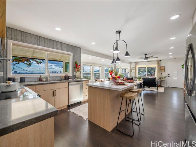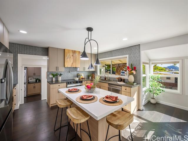 - Welcome to this stunning + fully remodeled 4 bedroom 3 bath home + studio in Palolo. This home invites you to experience modern luxury with its exquisite finishes and thoughtful design, all while maintaining the classic old Hawaii charm. Offering breathtaking views of Diamond Head, ocean + city skyline, and featuring a versatile bonus studio downstairs, perfect for multigenerational living or rental potential, adding to its value. Convenience is at your doorstep, with the vibrant Waialae Ave in Kaimuki, renowned for its locally-owned shopping and dining options, just minutes away. Prime location close to all Honolulu has to offer including beautiful beaches, Waikiki, Ala Moana, Downtown Honolulu, and more. This home is more than just a residence; it's an opportunity to embrace a modern lifestyle in one of Honolulu's most desirable neighborhoods. Don't miss your chance to make this exceptional property your own.