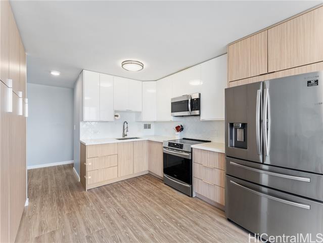 - Bright and spacious 3BR/2BA end unit at Kahala Towers, offering 1,368?sq?ft of comfortable living. Open-concept living and dining areas flow seamlessly to a modern kitchen with quartz countertops and stainless-steel appliances — ideal for family meals and entertaining. Both bathrooms have been beautifully renovated, and the primary suite offers generous closet space. Situated on the 6th floor, this end unit enjoys abundant natural light and pleasant partial views of Diamond Head and the Kahala neighborhood. Perfectly located across from Kahala Mall, Whole Foods, and family-friendly dining, with easy access to beaches and H-1. Building amenities include a sparkling pool, on-site management, and pet-friendly policies.