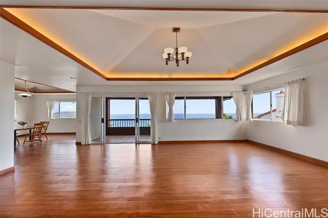 - Spacious 5 bedroom 4 bath home on Maono Place, a quiet interior street, within prestigious Hawaii Loa Ridge. This home features a covered lanai with beautiful sweeping ocean views and sunsets. Upstairs also features a spacious living area, dining room, kitchen with breakfast room, and 2 bedrooms, 1 bath. Downstairs features the primary bedroom & bathroom which look out to a spacious lanai, 2 bedrooms each with their own ensuite, and a dedicated laundry room. This gated community features gated security, tennis courts, hiking trails, and club room.