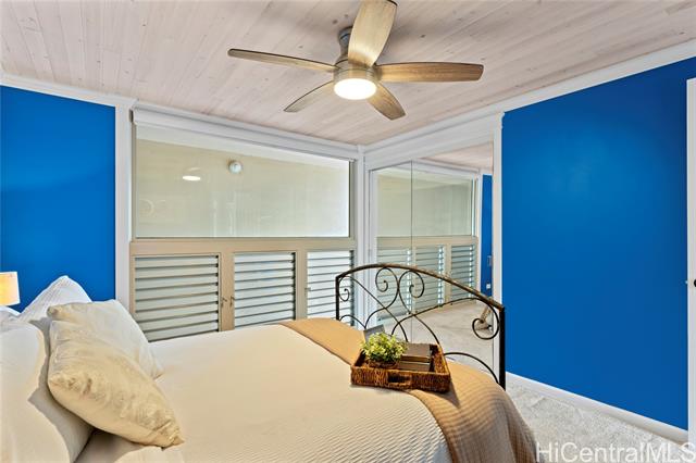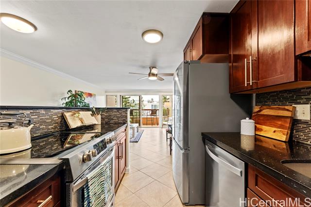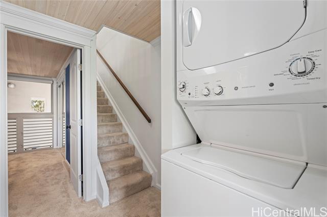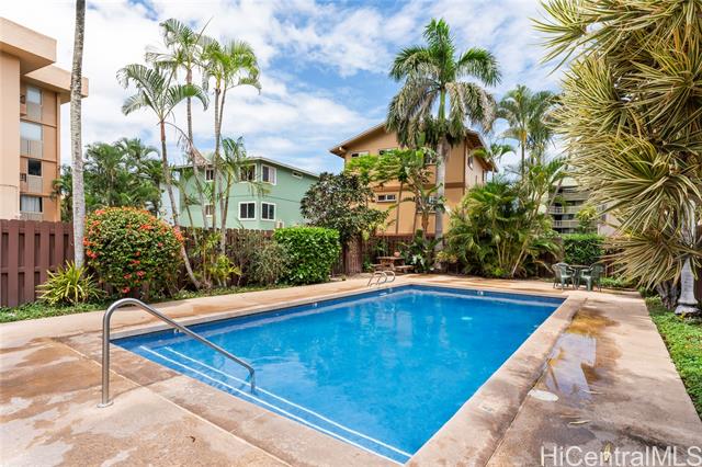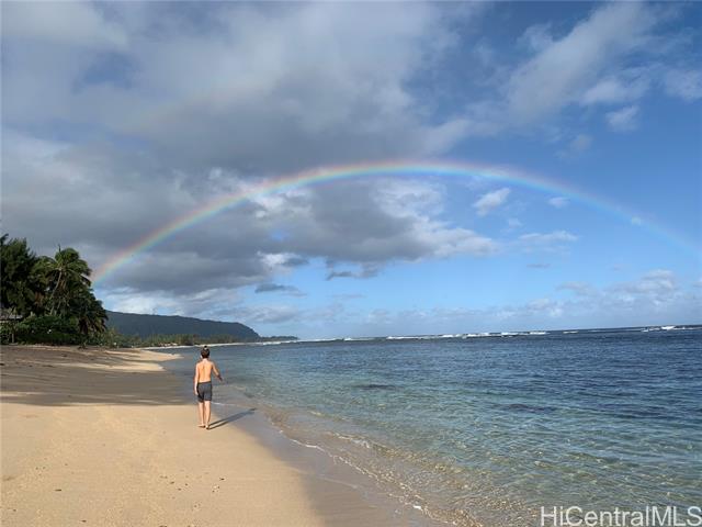 - One block from the beach on North Shore, peek a boo ocean view, swimming pool & sauna, cool tile floors, in-unit laundry, large closets, updated kitchen/bathroom, lanai & trade winds. LARGE DOG FRIENDLY/pet friendly community. This fresh, townhouse style unit has a special design in which the bedrooms are under your own living area! No one to disturb you at night walking above. Enter on the third floor which is your living/dining/lanai area and the stairs to your left take you down to your bedrooms, bathroom and laundry area. No walkways in front of your bedrooms. Some of the best privacy you can get in a condo on the North Shore. The resident manager is always working to ensure residents have the cleanest and safest complex in the area. Secured salt water swimming pool and sauna area with bathrooms and shaded seating. Located in the Aweoweo beach neighborhood featuring a fabulous beach park with swings, basketball court, playground, bathrooms, showers, picnic tables and year round ocean activities. Snorkel with fish and Hawaiian green sea turtles in the Summer and surf Pyramids surf break in the winter. Sit on the beach and watch whales jumping just outside the protective reef.