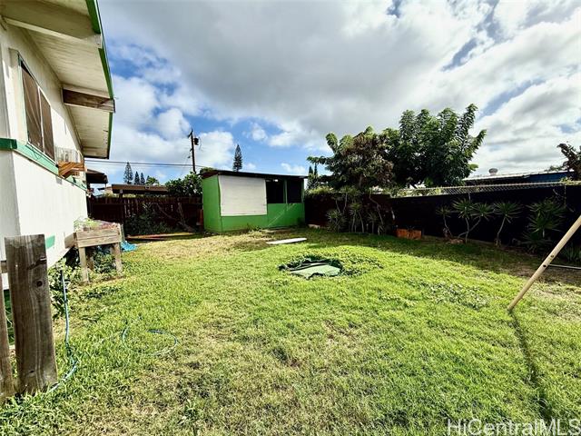 - Single family home situated between Hale'iwa Ali'i Beach park and Kaiaka Beach park. Single level home on a 5000+ sq ft lot ready for your personal touches! This well loved, 3 bedroom, 1 bathroom home features high open beam ceilings throughout and a hot/cold shower outside in addition to the full bathroom inside. Large storage shed in the backyard for your toys and other personal items. Flat, grassy yard has lots of room to expand and relax. Just a few blocks to the beach and Hale'iwa town shopping and restaurants.