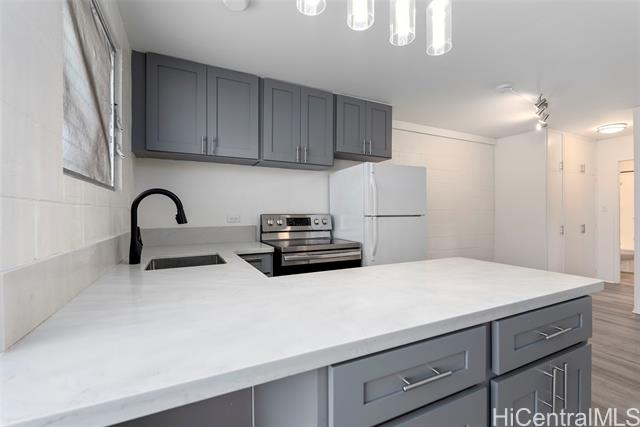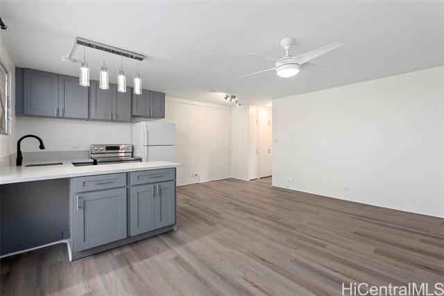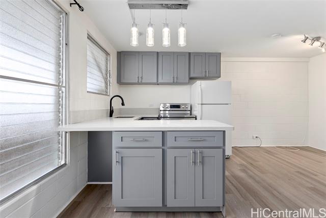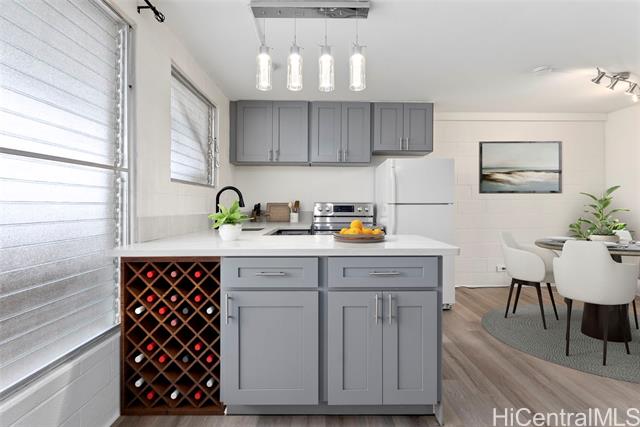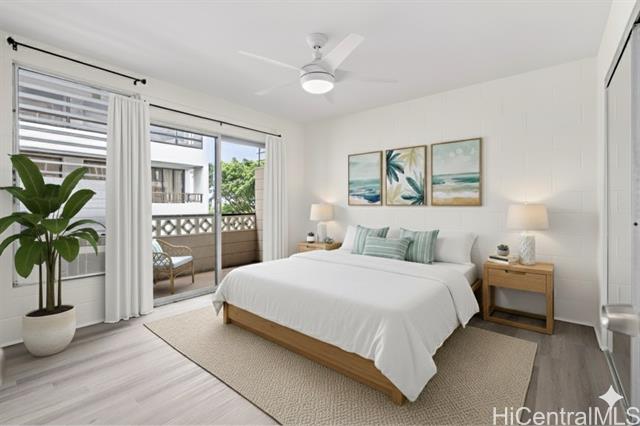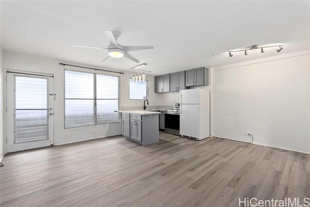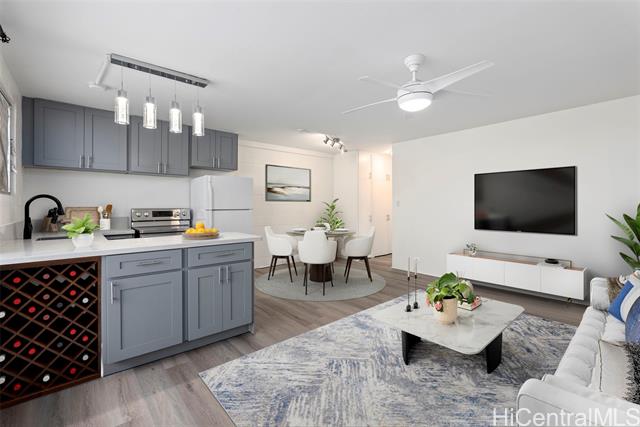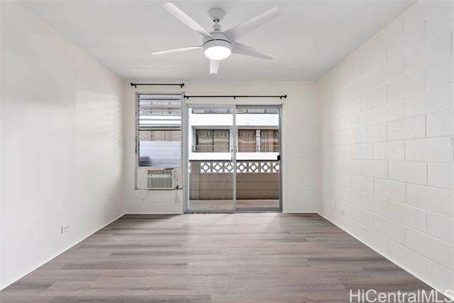 - NEW PRICE!!! _ Rarely available - don't miss your chance at Punahou Park Place! This renovated 1-bedroom, 1-bath with 1 partially covered parking stall is move-in ready and packed with upgrades. A sleek, remodeled kitchen thoughtfully opened to overlook the living and dining areas, featuring glass pendant lighting, quartz countertops, and additional cabinetry. The home also offers an updated bathroom, vinyl plank flooring throughout, refreshed lighting and ceiling fans, bedroom AC, and the complete removal of all popcorn ceilings! Bright and breezy with lots of windows, this unit offers extra privacy and a lanai overlooking Makiki Neighborhood Park and community garden. Conveniently located near UH Manoa, Kapiolani Medical Center, Ala Moana, shopping, dining, and freeway access. Perfect for first-time buyers or savvy investors. This one won't last long! *Building has 100% hurricane coverage.* _ One or more photos have been enhanced