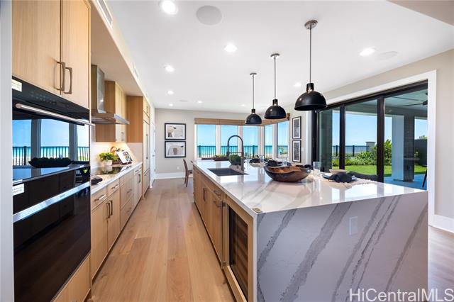 - Experience refined coastal living in this expansive new construction single-family home offering over 4,100 square feet of thoughtfully designed interior space. With five spacious bedrooms, five-and-a-half baths, a generous loft, private retreat, covered lanai, and a three-car garage, this residence is ideal for both relaxed everyday living and elevated entertaining. Enjoy panoramic ocean views and a host of upscale features, including central air conditioning, a 120-gallon solar water heater, EV charger readiness, and accommodations for a photovoltaic solar electric system. The gourmet kitchen is outfitted with premium Sub-Zero and Wolf appliances—including a 42” built-in refrigerator, stainless steel induction cooktop, convection oven, microwave with drop-down door—and a Bosch Energy Star-certified dishwasher. Professional front and rear landscaping with automatic irrigation complete the home’s seamless indoor-outdoor lifestyle. Naupaka - 75.30 A floorplan. Kekainani at Hoakalei | One of the final 32 luxury residences in the prestigious Kuapapa neighborhood.