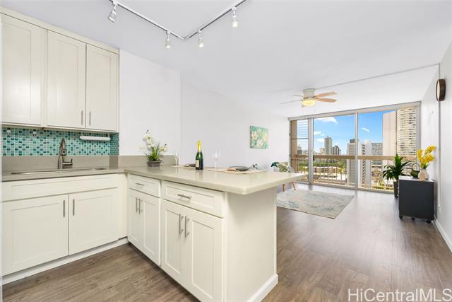 - Enjoy cool mountain breezes from this spacious and tastefully upgraded 2-bedroom, 1 bathroom apartment. Updates include quartz countertops, newer cabinets, and luxury vinyl plank floors. Located in a secure building with an enter phone system and secured elevator fob access. Unit comes with one covered parking stall. Conveniently situated near UH, Chaminade, Iolani, beaches, shopping centers, restaurants, bus lines, and freeway access. This property is ideal for first-time homeowners or investors looking for a prime location. Don't miss out on this opportunity to own a piece of paradise! (One or more photos are enhanced)