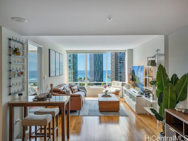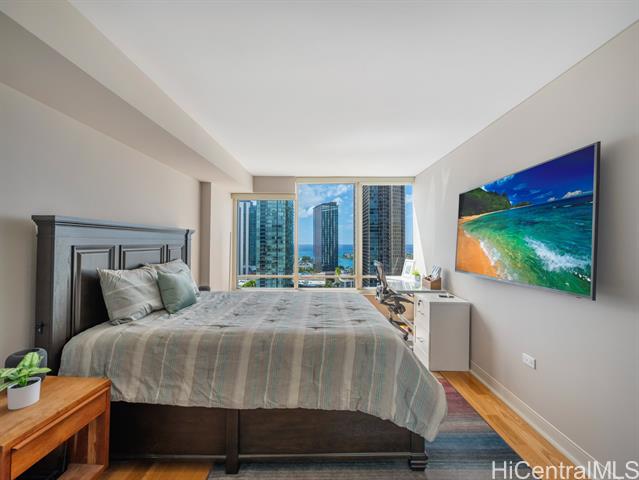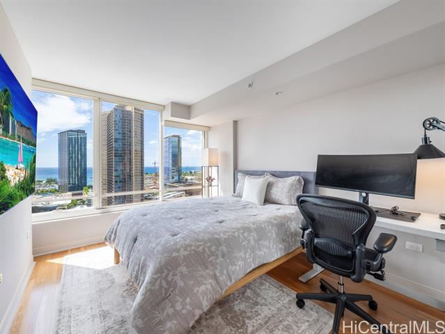 - This upgraded 2-bedroom, 2-bath residence on the 26th floor of Pacifica Honolulu features a flexible alcove- prefect for a home office or den- plus expansive windows that flood the living spaces with natural light and showcases sweeping ocean and city views. Enjoy a brand-new kitchen, wood flooring, built-in cabinetry, and an in-unit washer/dryer. Comes with two tandem parking stalls. Ideally located near Ala Moana Center, Whole Foods, Ward Village, beaches, and surf spots- with Blaisdell Center just across the way for concerts and farmer's markets. Resort-style amenities include a full gym, sauna, pool, hot tub, BBQ areas, poolside cabanas, dog park, theater rooms, and multiple lounge areas. Pacifica is secure, pet-friendly, and offers 24-hour front desk service- convenient, comfortable living in the heart of Honolulu.