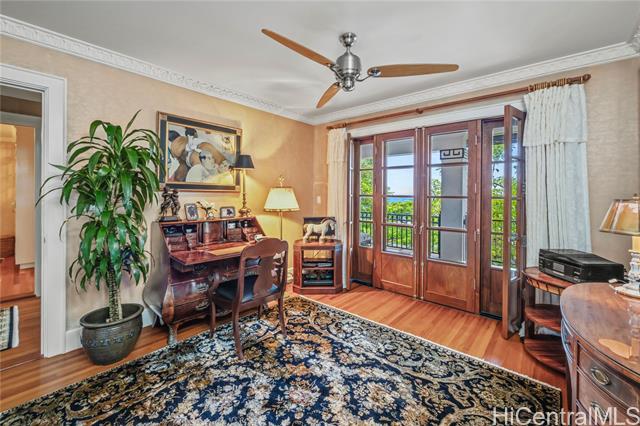 - A Rare Diamond Head Estate with Timeless Elegance and Botanical Distinction- 2955 Makalei Place is a legacy estate that reflects decades of thoughtful ownership and unmatched care. Lovingly maintained and meticulously upgraded, this refined residence sits on an expansive 34,157 sq ft lot and showcases an extraordinary level of craftsmanship, preservation, and pride. Honoring the property’s architectural heritage while introducing modern enhancements that elevate daily living. From the custom woodwork, curated interiors, and peaceful lanais, every element exudes quality and intention. Central to the plan of the garden, which was meant to create “an oasis in the midst of chaos”, were water features and arbors, which bring shade and structure to the garden with the addition of terraces connected by a winding path. The fountains and water features add visual beauty to the garden, as well. Tucked into the side of one of the lower hillside terraces, the path wanders up to and around a small yoga studio and guest cottage. The grounds are a living masterpiece. Breathtaking panoramic ocean and coastal views, minutes from Waikiki resort amenities, private clubs, and beautiful beaches.