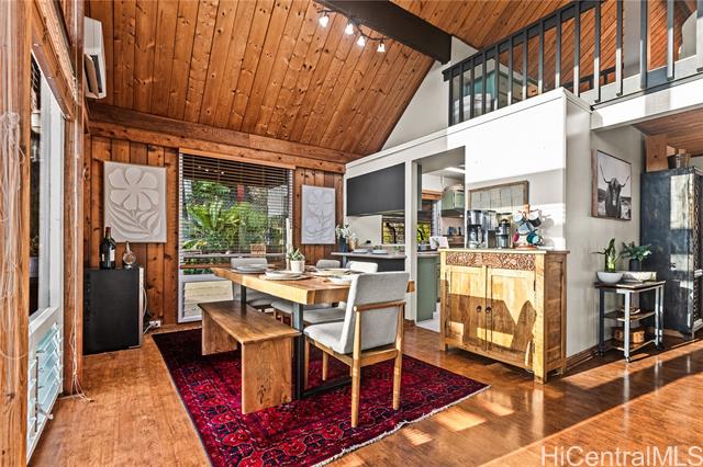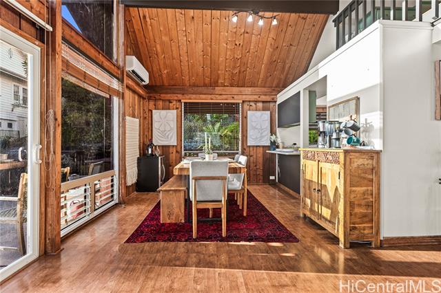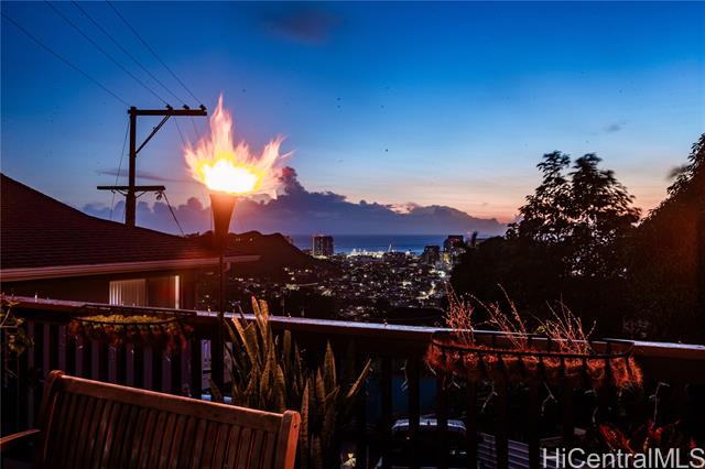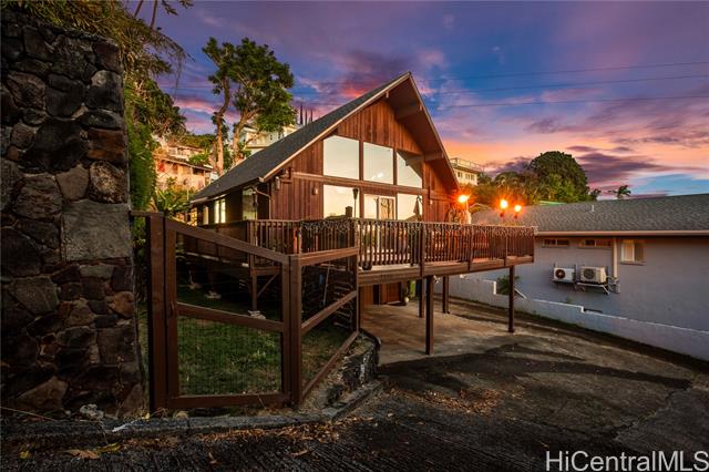 - Nestled in the coveted Pacific Heights neighborhood of Honolulu, this impeccably maintained chalet-style 3-bed/2-bath home offers cozy mountain living with breathtaking views of the coastline and city beyond. Step inside to discover rich cedar and high ceilings in the light-filled main living area. The kitchen features a new sink and appliances, freshly-painted cabinetry and a breakfast bar that flows seamlessly into the dining area. The roomy lanai gives you space to eat and relax while enjoying stunning Ocean, City and Punchbowl views. The owners have meticulously cared for and updated the home, installing 16 fully paid-off solar panels, fully replacing the roof, gutters, and water heater, renovating in both bathrooms, adding updates to the kitchen, extending the lanai to wrap to the side entrance, building an enclosed workshop area underneath the lanai, building a stand alone shed on the side of the home, and adding a fence enclosing the yard--all in the last three years. Just a couple minutes from downtown Honolulu, popular dining and boutique shops, and easy freeway entry, enjoy the balance of retreat-style hillside living together with urban convenience and proximity.