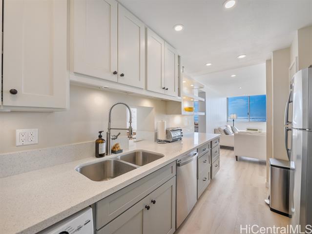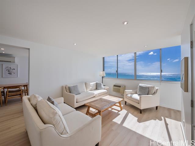 - Welcome to one of the most desirable units in Foster Tower- a prime end unit with unobstructed ocean, beach, and sunset views. This beautifully renovated 2-bedroom, 2-bath condo features a modern kitchen with stainless steel appliances, updated bathrooms, new flooring, and both spilt and window AC units for added comfort. Washer and dryer are in-unit, and the property includes a FEE SIMPLE interest with an assigned parking stall. Located directly across from Waikiki Beach, Foster Tower offers secure entry and resort-style amenities including a newly renovated gym, sauna, and pool. With Resort zoning and a 30-day minimum rental allowed (per house rules), this unit is perfect for a full-time residence, vacation home, or investment opportunity. First Open House Sunday, November 2nd, 2-5 pm. *some photos have been virtually decluttered. First Open House Sunday, November 2nd, 2-5 pm.