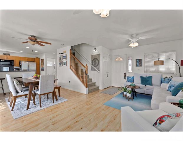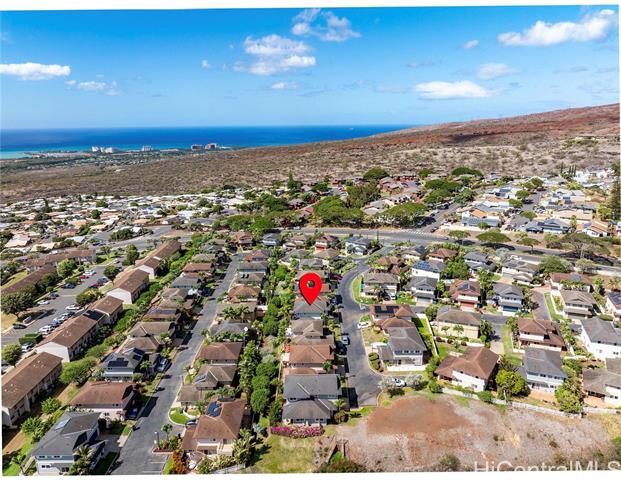 - Welcome to Watercolors at Makakilo. Upper Makakilo is known for its nice breeze and ocean views from the west side all the way to Diamond Head. Enjoy the view of the ocean and Diamond head while driving down to the freeway and Kapolei area. This beautiful and well kept home features an expanded primary bedroom with views of the ocean and city lights. This home has 3-bedrooms/ 2.5 baths attached 2-car garage. There are wood laminate floors throughout downstairs and carpeted upstairs. Equipped with stainless steel appliances, split Ac and ceiling fans. In the easily maintained back yard area there is a concrete slab patio surrounded by luscious green plants. Easy access to the freeway, shops, groceries, medical facilities and transportation service: Bus service right off the entrance of Watercolors community. Queens and Kaiser medical facility, groceries like Safeway, Foodland, Don Don Donki and Costco are all a short distance away. Short drive to beaches of Barber's Point and Ko'olina Resort and countless restaurant options.