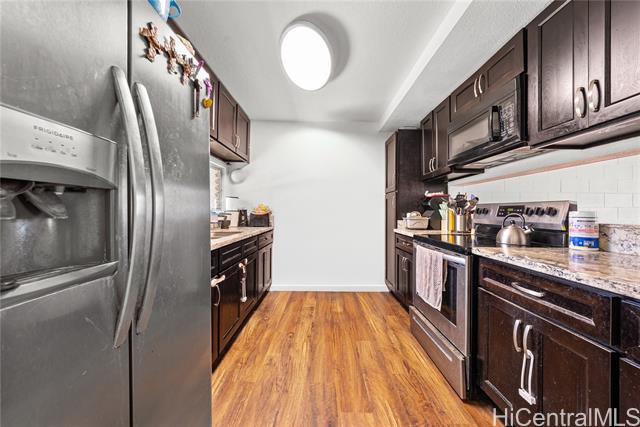 - Welcome home to this beautifully upgraded four-bedroom, two-bath townhome situated in the desirable hills of Makakilo. Designed for both comfort and functionality, this move-in ready residence is an excellent fit for first-time homebuyers or investors seeking a low-maintenance property with strong rental potential. The interior features luxury vinyl plank flooring throughout, offering a modern look that’s both stylish and durable. Upstairs bathrooms has been refreshed with a reglazed tub, adding a clean and updated finish. The open-concept living area flows seamlessly to a private deck backyard, perfect for entertaining or enjoying the cool Makakilo breeze. With two assigned parking stalls, convenience is built right in. The community offers amenities such as a pool and playground, enhancing the lifestyle experience. Ideally located just minutes from Kapolei’s shopping, dining, and beaches, this home combines hillside living with the convenience of nearby urban amenities. Don’t miss your chance to own in one of West Oahu’s most sought-after communities—Makakilo living at its finest.