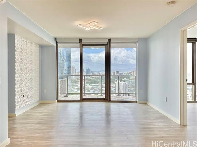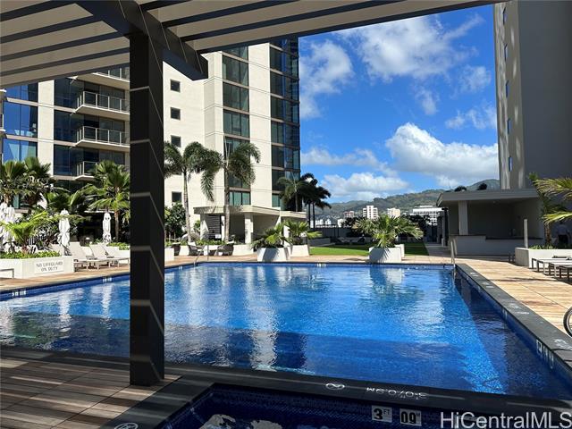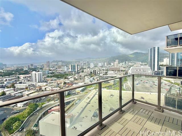 - Welcome to Sky Ala Moana West #2106 — the highly sought-after #06 stack, known as the best layout in the building. This unique floor plan features a true dining area rarely found in other units and two spacious bedrooms, each with its own walk-in closet. The 2-bedroom, 2-bath residence offers 809 sq ft of interior living space plus a 99 sq ft lanai with beautiful city, mountain, and partial ocean views. Completed in 2023 and kept in great condition, it features a modern kitchen with quartz countertops and Bosch appliances, including a refrigerator with ice and water dispenser, split A/C in every room, in-unit washer/dryer, and curtains included. Enjoy wonderful resort-style amenities with two pools, spa, fitness center, BBQ cabanas, multiple party and recreation rooms, and 24-hour security. Ample guest parking with EV charging stations for visitors. Excellent Ala Moana location—across from Ala Moana Center and close to beaches, dining, and entertainment. Move-in ready. Great night view of Honolulu’s city lights—see photos! This can be your perfect home.