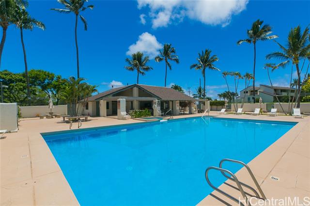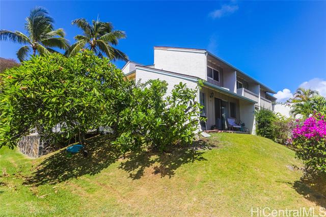 - Great corner unit in Aikahi Gardens now available! Aikahi Gardens is a complex conveniently located close to the Marine Base, H-3, Safeway shopping center (with a Japanese restaurant, Starbucks, a veterinarian and much more) and of course world famous Kailua Beach. This freshly painted unit has a private entrance on the Kailua side of Oko Street and two great close parking places in the shade! Features include a desirable floorplan with the primary bedroom (and a full bathroom!) on the first level opening up to the private enclosed courtyard. Upstairs are two more bedrooms and another full bathroom. The back lanai opens to large grassy area perfect for kids or just enjoying the view. A short walk away is the large sparking pool, spa - big enough to swim laps in and hours of fun for the kiddos! An open air clubhouse large enough to hold parties in is the cherry on top.