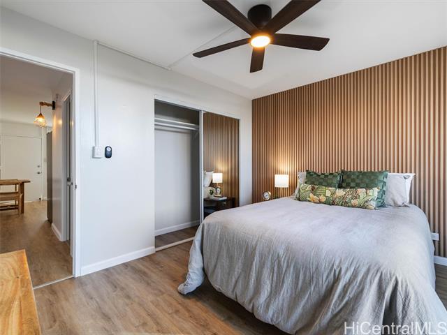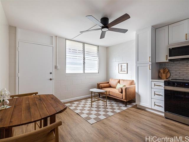 - **SELLER CREDIT OFFERED TO QUALIFIED BUYER**. INQUIRE TURNKEY & FULLY RENOVATED | Modern Island Living in McCully *Seller is open to creative financing options, including potential no-money-down structures on this turn-key property* Discover Hale Hoaloha - a boutique, 7-story residence of just 35 units tucked quietly in the heart of McCully. This bright, breezy 1-bedroom, 1-bath home on the 3rd floor has been tastefully renovated from top to bottom and is truly move-in ready. Fresh modern interior with new vinyl flooring, updated finishes, and an open-concept layout that flows seamlessly onto a spacious lanai - perfect for morning coffee or evening sunsets. Community laundry on the main floor adds convenience, while the building's secure entry and well-kept common areas ensure peace of mind. Enjoy the best of Honolulu living: minutes from UH Manoa, Ala Moana Center, Waikiki Beach, and downtown, with easy freeway access and plenty of nearby dining, cafes, and markets. With high owner occupancy and modest maintenance fees that include water, sewer and refuse is ideal for first-time buyers, investors, or anyone seeking a simple, stylish island retreat.