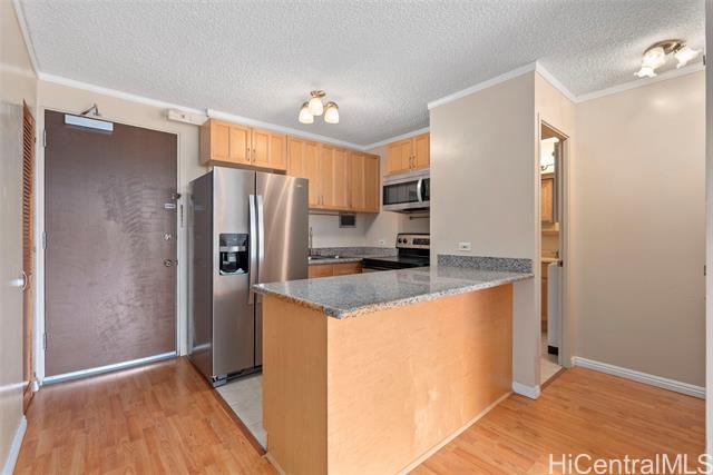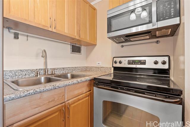 - 1BR/1BA Unit at Village Maluhia! This unit features a granite tops, newer refrigerator, laminate flooring, crown molding, in-unit washer/dryer, window a/c in bedroom, lanai and assigned parking. This building features a swimming pool, sauna, bbq, recreation area, whirlpool, and sundries store. This building is conveniently located in Makiki, minutes to downtown Honolulu, University of Hawaii, easy freeway access and more. Building has 100% hurricane coverage.