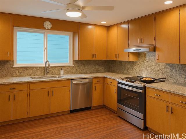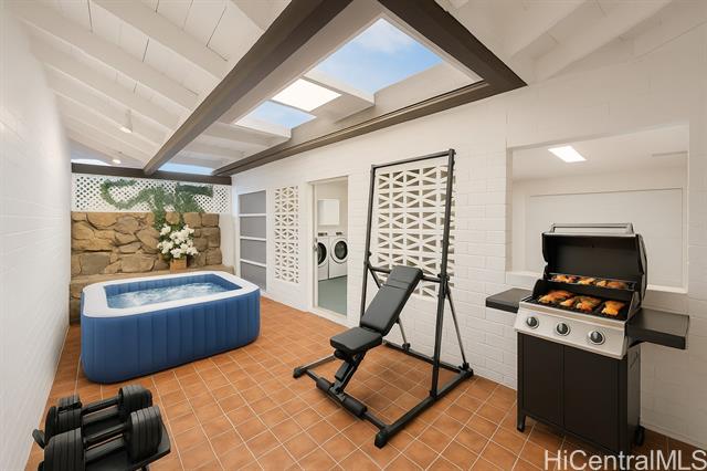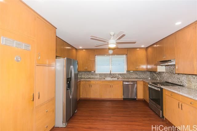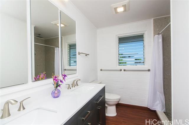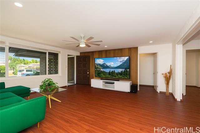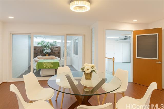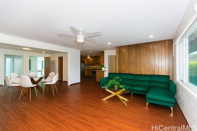 - Move into your all level, modern, forever home. A solid, concrete-built investment for savvy investors to enjoy Kahala's shopping, dining, and beautiful beaches and parks. Your exclusive private patio with skylights protects you from sun/rain. Use the patio as your private home gym, outdoor dining room, hot tub spa, or massage/yoga therapy studio... the options are unlimited! The easy-care stone garden with real grass lawn and mature trees welcome you home to a lush landscape. The useful access ramp is perfect for groceries/strollers/wheelchairs. Close to Kahala Mall & Theater, Whole Foods, restaurants, gyms, tennis and pickleball courts, hiking/running trails, and farmer's markets/fine dining at KCC. $5K credit available for painting the home in your favorite color. Remodeled windows, chef's kitchen, dining room, and bathrooms. Huge, accessible shower in Primary bathroom. Private, split ACs in every bedroom. All-new kitchen appliances, water heater, and interior flooring. 2 car garage with 3rd parking/car-wash stall. So much street/lot parking for hosting family/friends. Staging furniture, home gym, home theater system, massage chair, and hot tub are negotiable. Enhanced photos.