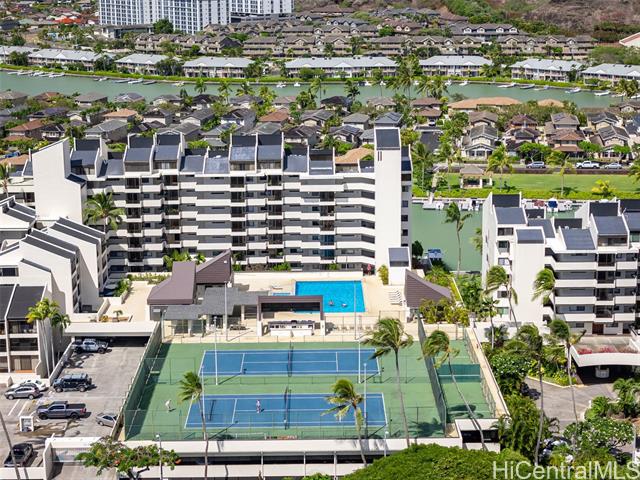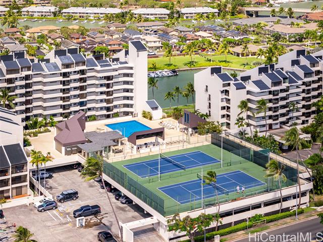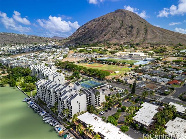 - Welcome to the Esplanade in Hawaii Kai! Experience marina-front living in one of East Honolulu’s most desirable communities. The Esplanade offers resort-style amenities including a saltwater pool, jacuzzi, tennis and pickleball courts, fitness center, steam rooms, multiple BBQ areas, and a spacious clubhouse perfect for gatherings. This corner-end 1-bedroom unit features nearly 900 square feet of interior space. Ideally positioned above the designated “quiet deck,” the unit enjoys a peaceful setting away from the typical high-rise building foot and noise traffic. The unit is deeded with one covered parking stall and ample guest parking for visitors. Enjoy the convenience of being close to Hawaii Kai’s shopping, dining, and marina activities. Come enjoy the Hawaii Kai Marina lifestyle and take advantage of the serene and resort-like atmosphere. *Some photos have been digitally enhanced and virtually staged*