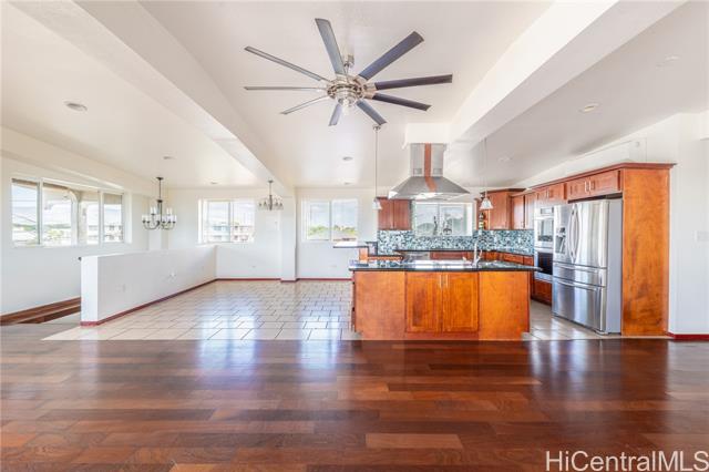 - Ideal for Multigenerational Living or Income Generation! Expansive 7BD / 5BA home with over 4,000 sq. ft. of living space Built in 2011 with commercial-grade steel construction for lasting durability Each bedroom features its own split A/C system Upper level: 3BD/2BA main home with Jacuzzi tubs + separate-entry 2BD/1BA unit Lower level: Game/media room, office, and 1BD/1BA with private entry Street level: 1BD/1BA suite with wet bar and separate entrance Garage: 2 overhead boat lifts + abundant storage (ideal for boats or workshop) Energy-efficient: 60 leased PV panels with a low monthly lease fee Interior highlights: Engineered wood & vinyl flooring, granite countertops, dual ovens & sinks Outdoor: Mango and fruit trees in backyard; minutes to ocean access and sandy beaches Note: Bedroom/bath count and square footage differ from tax records Subdivision in process; TMK will be updated once the new number is officially issued