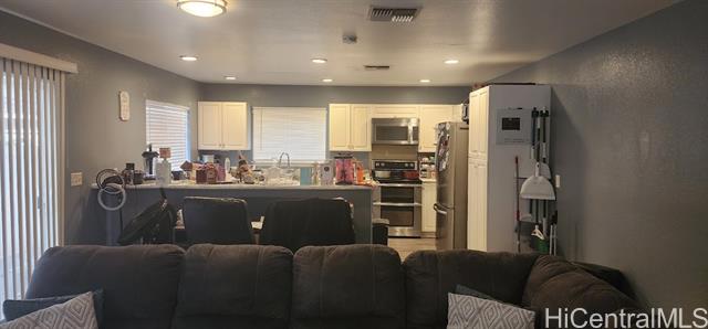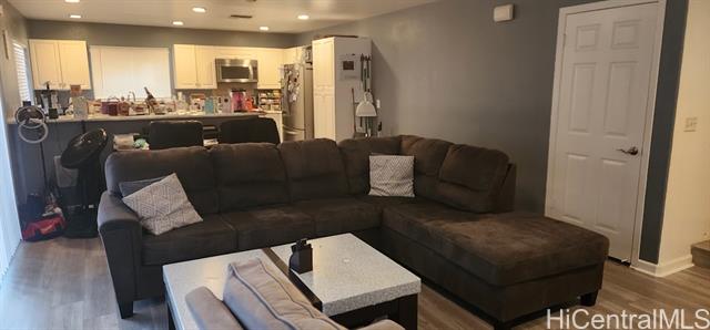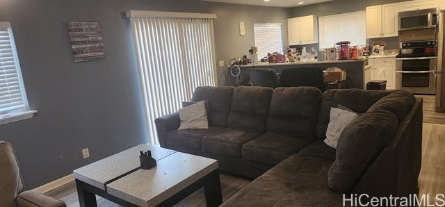 - Well maintained, Single Family Home with 3 bedrooms, 2.5 baths at the gated community of Seascape at Makakilo. Split level entrance with main living, dining, kitchen and half bath downstairs and bedrooms and full baths upstairs. Primary bedroom, crown molding with renovated primary bath, Brazilian Cherry laminate flooring throughout main living and bedrooms with tile flooring in kitchen and baths. Kitchen has stainless steel appliances with Duan Oven. Main living space (in-wall speaker system) open to dining and kitchen with sliding doors opening up to small wrap around yard, cool breezes flow through during cool months and Central AC for warmer weather, Leased 26 Photovoltaic panels with 2 LG batteries $203.50 per month Eco smart tank-less water heater 100% efficiency and endless hot-water. Exterior painted 2019 and interior painted July 2020.