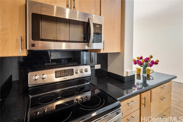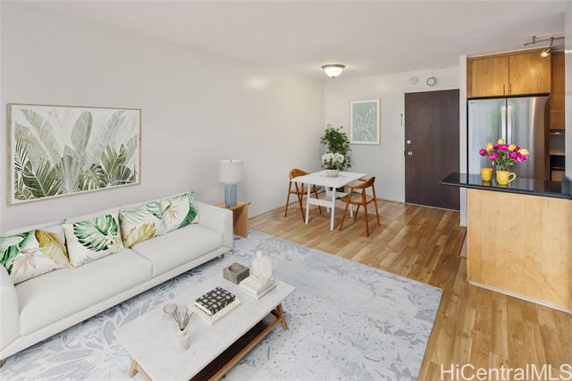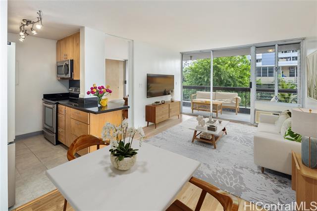 - Step into a thoughtfully updated 1 bedroom, 1 bathroom residence that blends modern finishes with the timeless charm of Honolulu living. This inviting home features a renovated kitchen and bathroom, offering a fresh and functional space for daily life and entertaining. Enjoy seamless indoor-outdoor living with a generous 169-square-foot lanai accessible from both the bedroom and living area—perfect for morning coffee, evening relaxation, or hosting friends. The unit includes one assigned parking space for added convenience. Located just moments from the vibrant neighborhoods of Kakaako and Downtown, this home places you near the Honolulu Museum of Art, local restaurants, farmers markets, Ala Moana Beach Park, Magic Island, and world-class shopping and dining at Ala Moana Center. With direct access to the H-1 freeway, commuting and weekend outings are refreshingly simple. Kinau Lanais offers desirable amenities including a swimming pool and barbecue area, creating a lifestyle that balances leisure and livability in the heart of Honolulu. Some photos have been Virtually Staged.