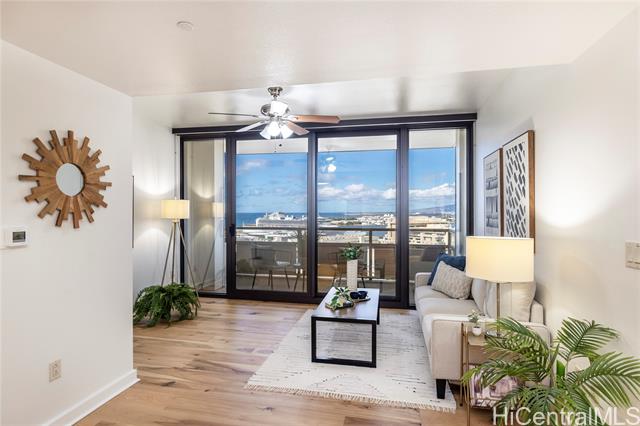 - Experience modern urban living at Keola Lai #2003, a beautifully refreshed 2-bedroom, 2-bath residence perfectly positioned high above Kakaako. Freshly painted and featuring brand-new appliances along with a new central AC system, this move-in-ready home combines modern comfort with elevated design. Floor-to-ceiling windows frame sweeping ocean, city, and mountain views, while the private lanai—a rare feature not available in all units—extends your living space for effortless indoor-outdoor enjoyment. This residence also includes the luxury and convenience of TWO parking stalls. Keola Lai is one of Honolulu’s premier luxury communities, offering resort-style amenities including a fitness center with brand new equipment, pool, BBQ areas, and 24-hour security—all just moments from SALT at Kakaako, downtown Honolulu, and Ala Moana. BONUS!!! Take advantage of an assumable VA loan at an incredible 2.25% interest rate! Don't miss this opportunity to own a stylish, move-in ready home with unbeatable financing options.