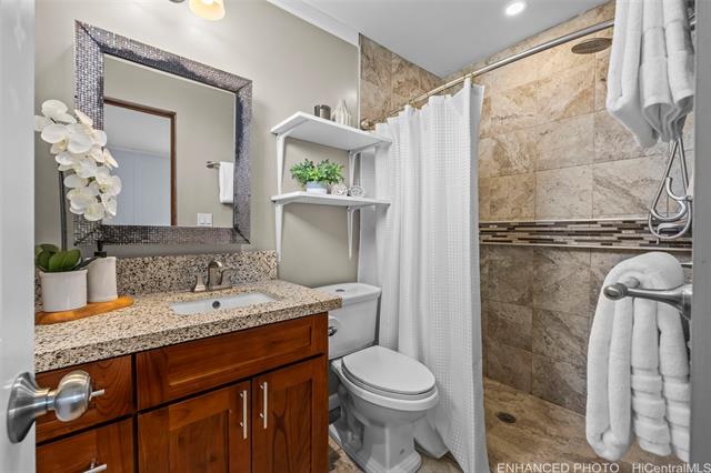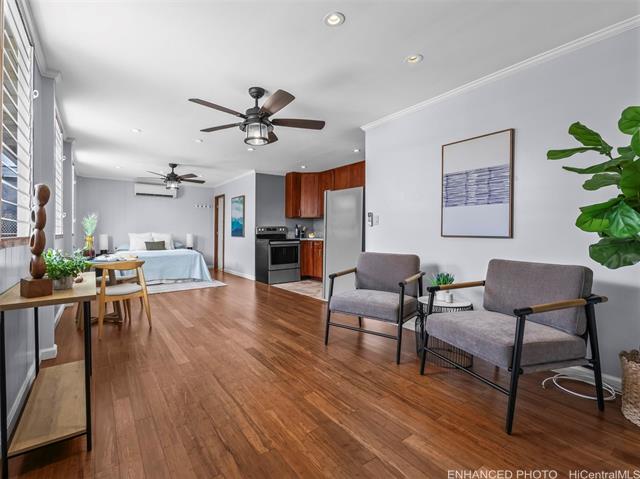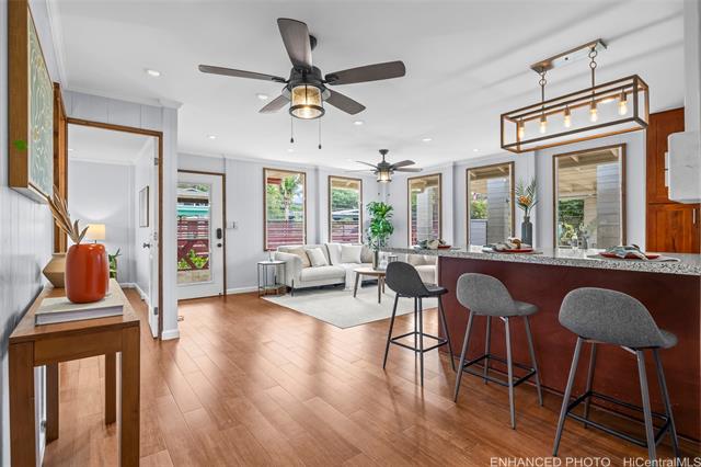 - Welcome to this charming 3-bedroom, 1-bath home with attached 420sqft guest suite (studio/1bath) in the heart of Ma'ili, where island living meets everyday comfort. Thoughtfully maintained with many upgrades, this residence features an open and airy layout filled with natural light and split system A/C throughout the home. Step outside to a fully fenced property with automatic rolling gate to enter a spacious covered carport with enough space to park 4 pick-up trucks. The large lawn and yard is perfect for entertaining, gardening, and relaxing. Behind the main home lies a versatile 400 sq. ft. detached flex space with air conditioning, ideal for a home gym, and office. Recent improvements include AC, photovoltaic panels (2020), and a carport & storage built in 2022. Conveniently located 2 blocks from Nani Kai Beach Park, and the Pu'u O Hulu hiking trail, this home offers both adventure and tranquility. Make this peaceful island retreat on Oahu’s Leeward Coast your next home.