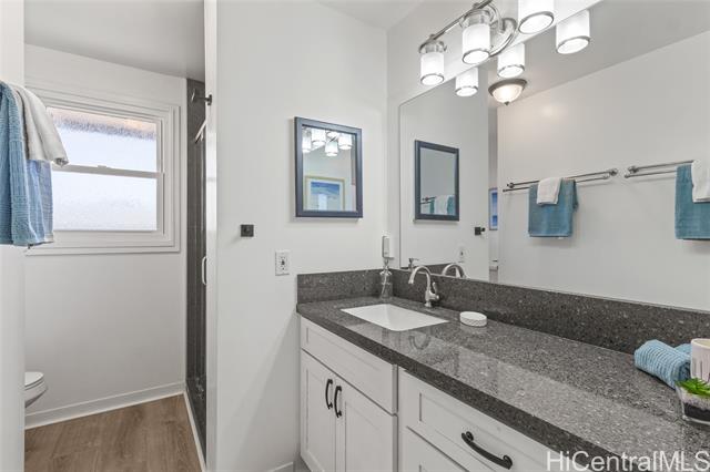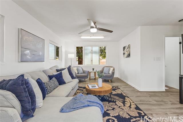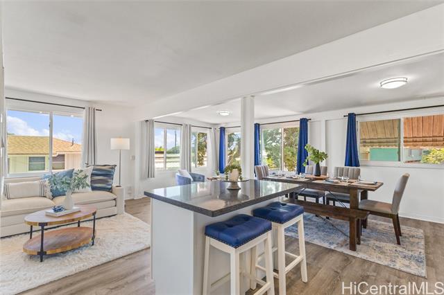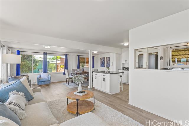 - Discover this beautifully remodeled 3-bedroom, 2-bath home with a flexible recreation room, perfectly situated in the heart of Pearl City. The open-concept layout features a bright living area that flows seamlessly into the modern kitchen, complete with sleek cabinetry, quartz countertops, and stainless steel appliances. Both bathrooms have been stylishly updated with contemporary finishes and fixtures. Double-pane windows enhance comfort and efficiency throughout. Step outside to a covered patio, ideal for outdoor dining or entertaining. A two-car carport provides convenient parking and additional storage. Located just minutes from Pearl Highlands, Pearlridge Center, and freeway access, this home offers the perfect balance of modern living and everyday convenience.