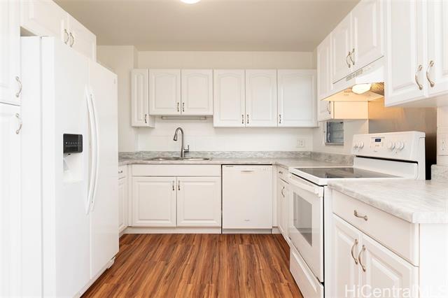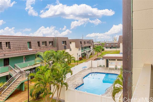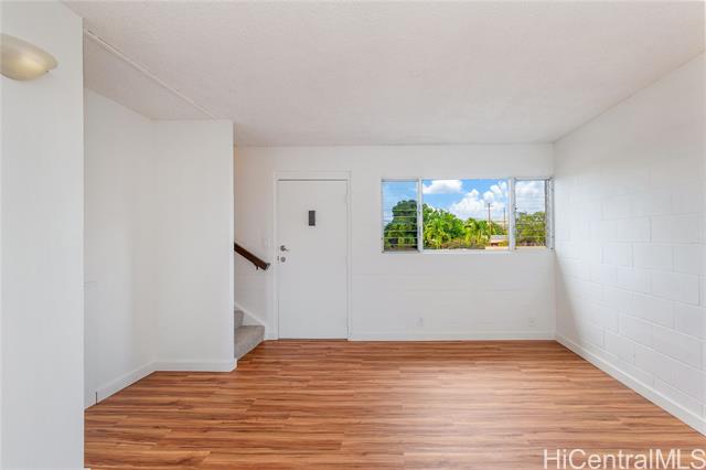 - This spacious split-level townhome offers over 1,100 square feet of comfortable living space with no neighbors above. Upstairs, you’ll find all three bedrooms and a full bathroom, providing privacy from the main living area, while a convenient half bath is located downstairs. The home features a bright and open living room, new luxury vinyl plank flooring, new carpet, a freshly painted interior, and new kitchen countertops. A SPACIOUS LANAI off the kitchen and dining area provides the perfect spot to enjoy the fresh island air, creating a seamless indoor-outdoor living experience. TWO ASSIGNED PARKING STALLS are included. Foster Heights Villa is a low-rise walk-up located near Pearl Harbor, with easy access to the freeway and just minutes from military bases. Residents can also enjoy the association’s pool, with HOA fees covering the internet, water, and other common expenses. The 2026 HOA fee is going to be $945.29/month. One or more photos have been enhanced.
