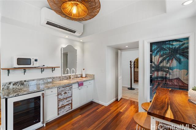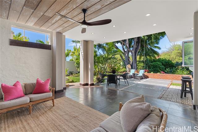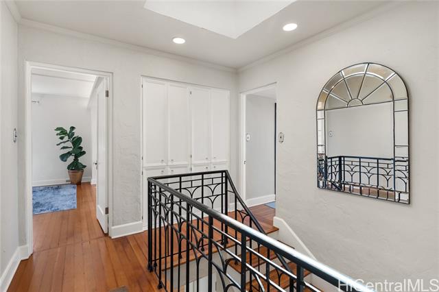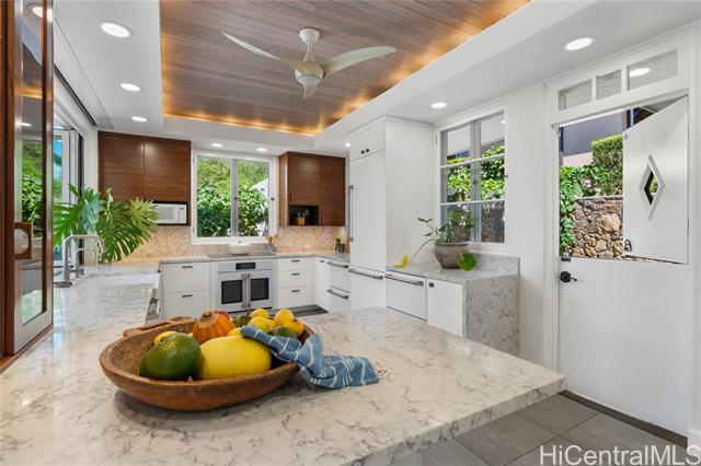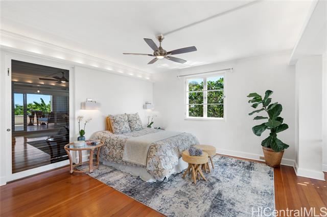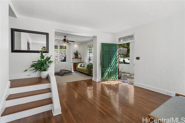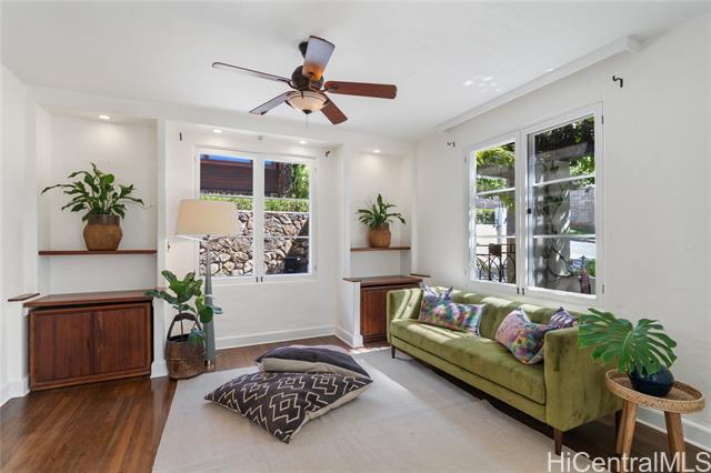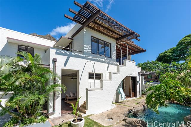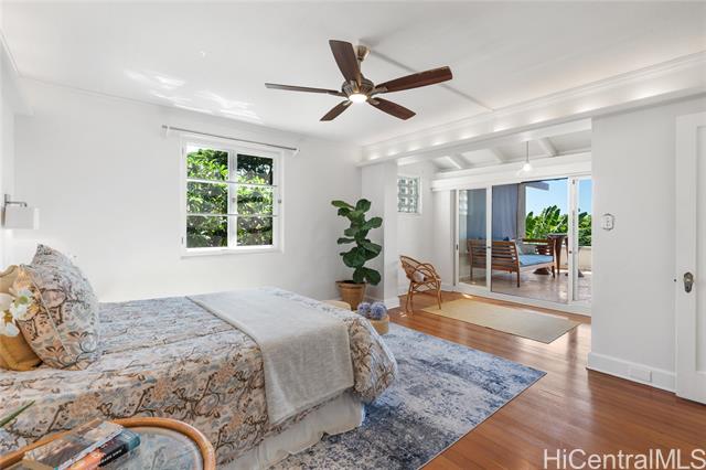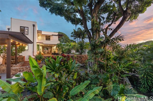 - Unique and so very special, this 1937 Albert Ives home nestled between Diamond Head Rd and the world famous Diamond Head National Monument. This beautiful home is located on the prestigious and iconic Makalei Place. Gorgeous ocean views can be enjoyed throughout this private sanctuary. It's surrounded by nature, birds and landscaped gardens. House and landscaping are anchored around a magnificent Chinese banyan tree. Ohia wood floors, polished concrete patios, pickled redwood walls, and modern built-in appliances are special features to name a few. Entertain and enjoy all the indoor outdoor spaces, especially the pool and spa tub. This gem of a property consists of three bedrooms and two full bathrooms upstairs of the main house. In a separate structure consistent with the rest of the home is a large guest cottage about 800 SF equipped with a kitchenette, large bathroom and its own laundry and patio space. Below the guest cottage at the bottom of this sprawling property is a finished enclosed basement with bathroom. The space is great as a workshop, artist studio or storage. This is a rare slice of history that reflects old Hawai'i with modern livability.
