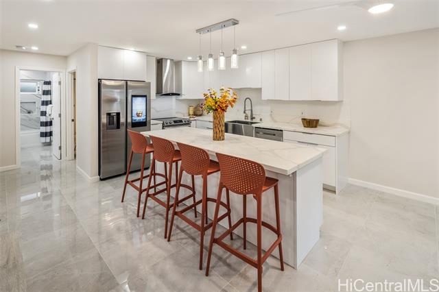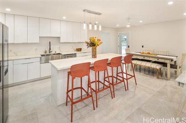 - Rarely does a home offer this much flexibility for Multi-Generational living. Featuring three distinct living areas under one roof, this Enchanted Lake residence is the perfect solution for extended families or those seeking dedicated guest quarters. Completed in 2025, the home offers nearly 3,000 sq. ft. of interior space, and is outfitted with premium vinyl windows, split AC, and high-end modern finishes. Beyond the interior, the 714 sq. ft. view deck provides incredible outdoor scale, while the garage and driveway easily accommodate six vehicles or a boat. Luxury, comfort, and convenience, all just a stone's throw from Kailua beach, shopping, restaurants and much more.