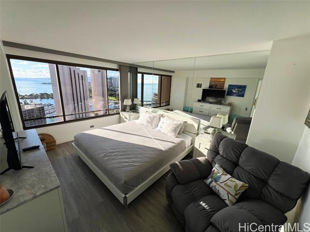- High-floor. best ocean-facing -11 stack, 2-bed/2-bath unit offers sweeping ocean, harbor and sunset views from every room. Open layout flows to coverd spacious lanai perfect for relaxation. Secure 2nd floor parking included. Resort amenities (pool, spa, sauna, gym, BBQ deck) and prime location just steps from beach, shopping at Ala Moana Center, and Waikiki dining. Whether you’re seeking a long-term Honolulu home or a sophisticated investment near the beach and city-core, this unit delivers lifestyle, convenience and value. Don’t miss the opportunity to make it yours. Great lifestyle or investment opportunity. Fully Furnished, vacation rental (30days+) ready unit. Discovery Bay is a well-managed building with 24-hour security. Perfectly located near beaches, Ala Moana Shopping Center, dining, and transit, this is Waikiki living at its finest! The unit is 96.893% fee simple and 3.107% leasehold at $18.53/mo. The AOAO has the right to purchase the remaining leased fee interest before the lease ends on December 31, 2039. There is an increase of 2% in maintenance fees for 2026. New Maintenance fee effective January 1, 2026 is $ 1,580/mo.