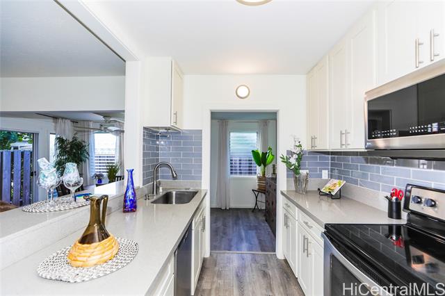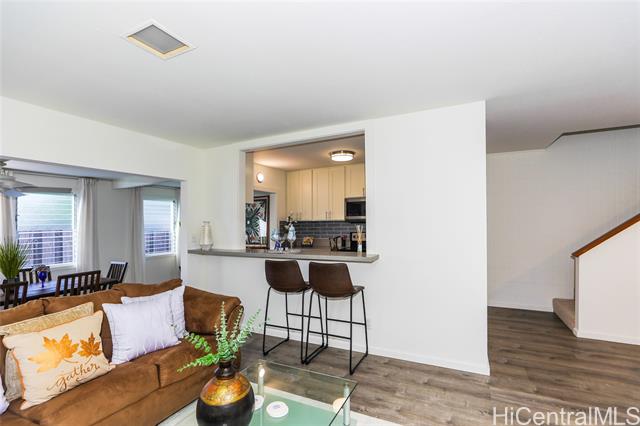- PRESTIGIOUS & rarely available Kuapa Isle! This inviting 4 bedroom 3 bath townhome features a covered lanai upon entry with a tranquil rock garden to sit & enjoy with your morning coffee. The stunning living room, smart breakfast nook off to the side and an additional enclosed lanai beyond the living room will leave you pleasantly surprised. The updated kitchen is equipped with SS appliances and includes a functional pass thru bar to the living room. The entire unit was freshly painted, includes luxury vinyl flooring throughout the downstairs and brand new carpets installed on the stairway and 3 bedrooms upstairs. The fourth bedroom downstairs has its separate entry fronting the lovely rock garden & covered patio. It also includes a full bath and a separate washer/dryer area. This well maintained home is ready for the buyer that is looking to move in NOW. Amenities include Marina access, spacious swimming pool, fantastic recreation room/ clubhouse, basketball court and much more. Well managed community staff, guarded entry, excellent maintenance of grounds, pet friendly complex makes for a truly appealing neighborhood.