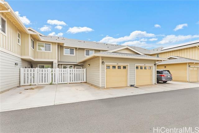 - Discover spacious living in this split-level townhome featuring 3 bedrooms, 2.5 bathrooms with over 1,500 sq. ft. of interior space and a 1-car garage plus an additional assigned parking stall. Step inside to an open-concept living, dining, and kitchen area, with both a front and back yard for added flexibility. All three bedrooms are located upstairs including a primary suite with its own ensuite bathroom and walk-in closet. The laundry area is also upstairs for added convenience. Split AC units keep each bedroom and the living area cool year-round. This home is ideally situated near visitor parking and ample street parking. You’re just minutes from the SoHo Community Center offering a pool, park, and party rooms plus right across the street from Koane Park. Located in the vibrant and growing Hoopili community, you’ll also enjoy close proximity to freeway access, Ka Makana Ali‘i Mall, Costco, shopping, dining, and more.
