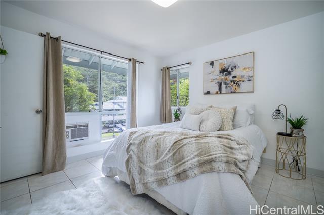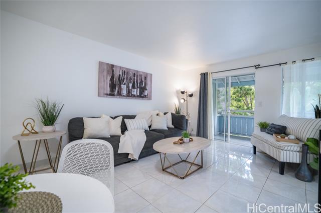 - Mornings begin with coffee on your covered lanai, looking out over the trees in the pet-friendly Gardens at Launani Valley, where this upstairs corner end unit sits quietly above it all. Inside, the bright, open living area flows naturally to the lanai, with a thoughtful layout that tucks the primary suite on one side for extra privacy and keeps daily life easy with an in-unit washer/dryer. Down below, you’ve got two assigned parking stalls, plenty of guest parking for friends, and a community that feels like a private resort—pool, tennis court, BBQ areas, clubhouse, playgrounds, and shaded walking and jogging paths along the valley. Your pets have green space to enjoy, neighbors wave hello on evening walks, and coming home feels like a retreat instead of a commute. Best of all, enjoy the peace of knowing there’s no maintenance fee increase scheduled for next year, in a convenient Central O?ahu location just minutes from H-2, Mililani Mauka shops, and Schofield/Wheeler.