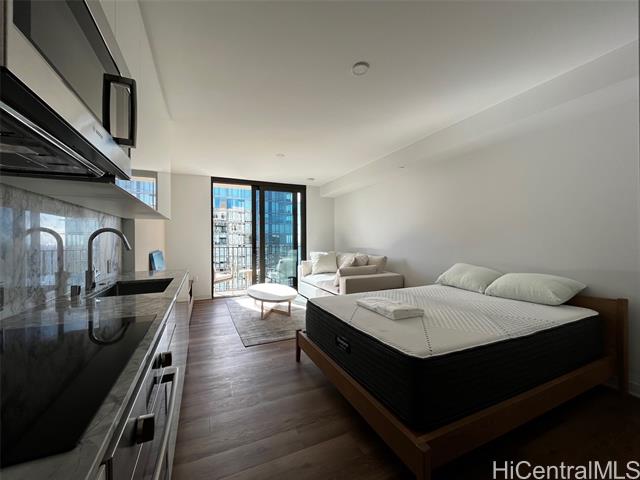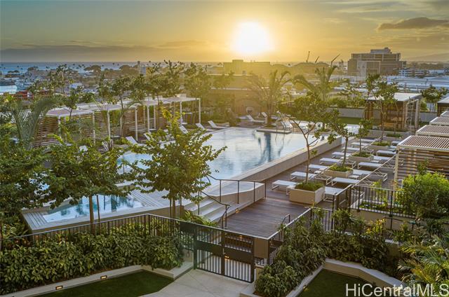 - Beautiful ocean view studio in "A'ali'i" in Ward Village! Elegantly designed by Soloman Cordwell Buenz architects with Rottet Studio (interior designers of Four Seasons), stepping into A'ali'i is like stepping into a 5 star hotel. Unit includes fully furnished (elegantly interior designed valued at $30k, NOT MURPHY BED!) Located in the heart of Kaka'ako, with Whole Foods Market, numerous shopping and dining venues, and Ala Moana beach all within walking distance, this modern residence has a large pool deck with multiple cabana and grilling areas and party rooms. The rooftop "Lanai" on the 42nd floor, boasts Sky Lounge, event space, private dining room, fitness center with sweeping ocean and city views! Enjoy the ocean view from your lanai. 1 parking included.