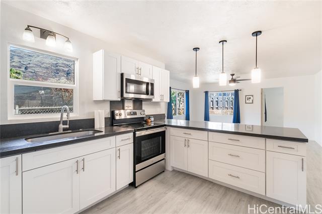 - Welcome to this charmingly updated home nestled in the heart of Waianae. Featuring a brand-new roof, updated kitchen cabinets, open concept living room and fresh flooring throughout, this move-in ready property blends comfort with style. Enjoy the generous living space and the convenience of a large, fully fenced yard - perfect for entertaining, gardening, or pets. Located near beaches, schools, and shopping, this home offers both tranquility and accessibility. Don't miss your chance to own a piece of paradise on the West Side!