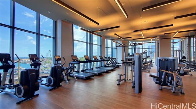 - BBQ,Condo Association Pool,Exercise Room,Fire Sprinkler,Meeting Room,Patio/Deck,Recreation Area,Restaurant,Security Guard,Trash Chute