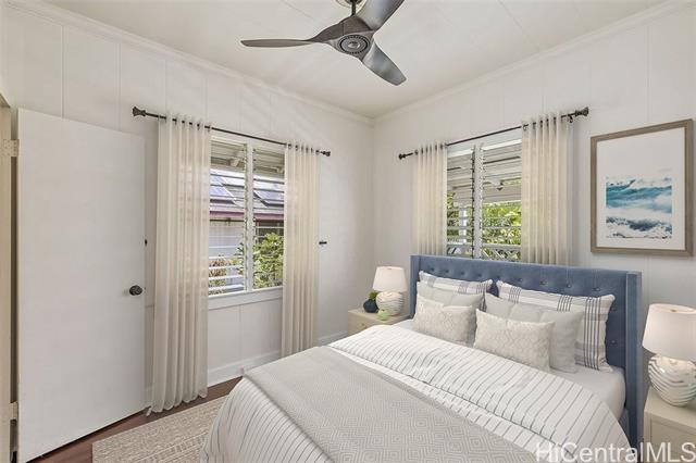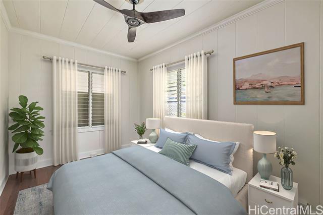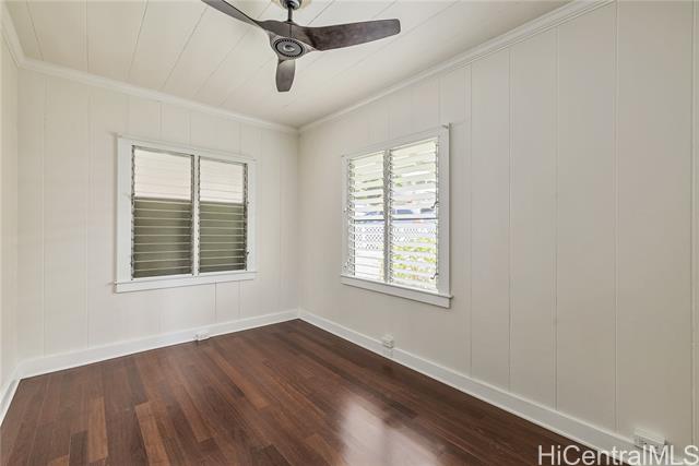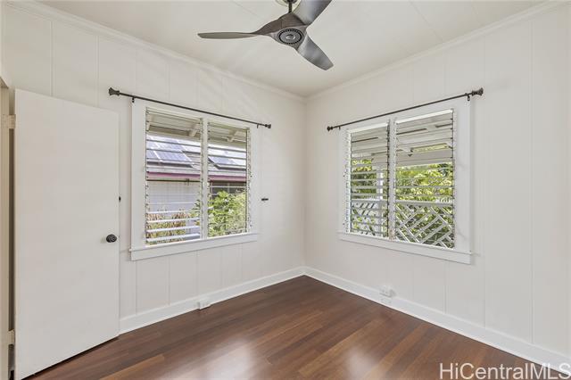 - Vintage charm meets modern convenience in this remodeled home featuring 4 bedrooms, 2 baths, and a flexible 2-entry layout ideal for 2 Flexible living area separations with separate kitchenette, or just large 4 bedroom living. Enjoy 1,680 sq. ft. of interior space, a spacious 5,000 sq. ft. fee simple lot with mango & other fruit trees, and a peek-a-boo ocean view. Highlights include a newer metal roof, vintage hardwood floors upstairs, ceramic tile downstairs, gas stove, 2 dryers, and 3 parking spaces including a 180 sq. ft. covered carport. Redwood single-wall construction upstairs, double-wall downstairs, plus a 460 sq. ft. lanai and under-house storage. Conveniently located near Pali Hwy, Likelike Hwy, H-1, and close to The Bus stop.