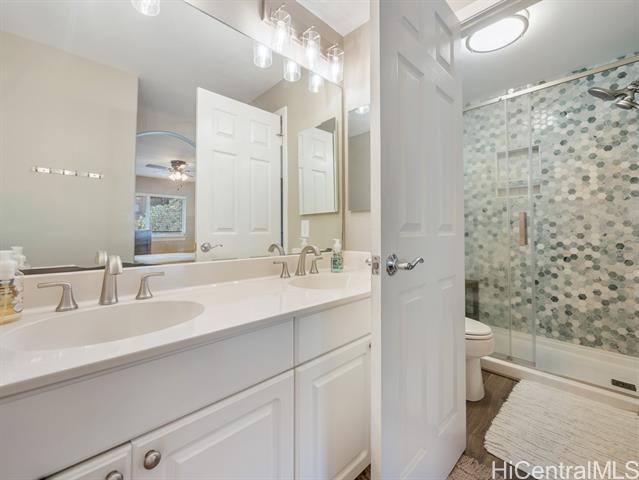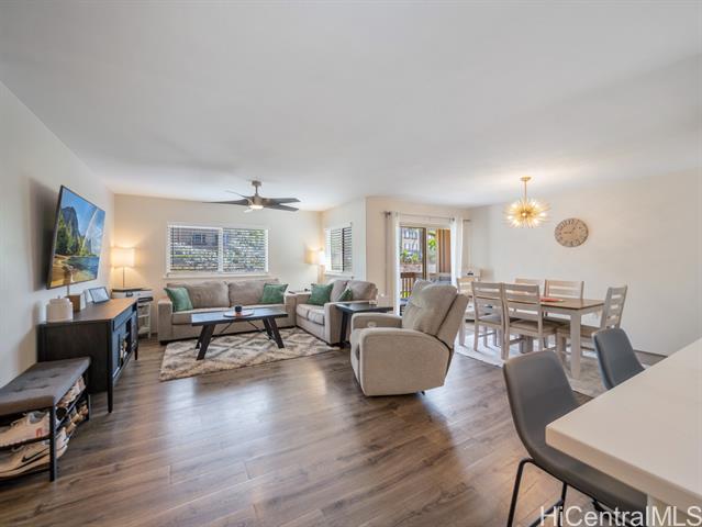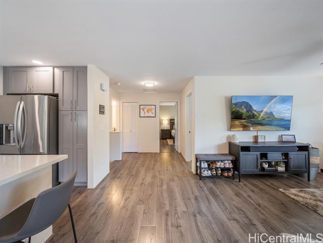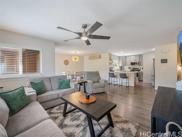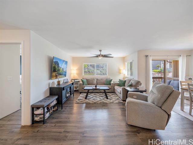 - Built in 2005, this updated Kai Nani at Makakilo townhome combines modern comfort with one of the lowest HOA fees around! Just $395.76/mo a 2-bed, 2-bath home with garage/driveway parking and ample guest spaces for convenience. Enter from garage or front entrance and once inside, the open layout flows from the renovated kitchen with stainless appliances and sleek cabinetry, to the dining and living areas that open to a covered lanai; perfect for morning coffee or cool hillside breezes. Luxury vinyl plank flooring, split AC in living and bedrooms and tastefully remodeled en-suite bathroom adds style and low-maintenance living to this home. Generous closet space for storage, great natural light and on the cooler, mauka facing side of the community. This well-kept, pet-friendly community is just minutes from H-1, Ko Olina, Target, Costco, Kamakana Ali‘i, restaurants and beaches. Low HOA, value, and space; rare at this price, and a smart alternative to older condos/townhomes with higher monthly fees. Perfect for first-time buyers, VA buyers, downsizers or investors seeking a comfortable Oahu lifestyle with reasonable monthly costs.