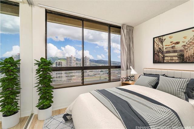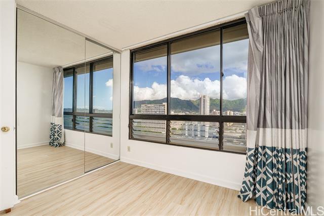 - Enjoy stunning views and ideal island living from this high-floor condo at 2121 Ala Wai, one of Waikiki’s most well-managed buildings. From the lanai, take in panoramic mountain views stretching from Diamond Head to Manoa Valley, the Ala Wai Canal, golf course, and city lights. On the walkway side, you’ll find beautiful ocean views, perfect for catching the Friday night fireworks. Remodeled in 2022, this 2-bedroom, 1-bath unit features updated flooring, modern kitchen cabinets, granite countertops, and upgraded lighting throughout. Two covered parking stalls add convenience, a rare bonus in Waikiki. The building offers great amenities including a pool, sauna, BBQ area, recreation room, and plenty of guest parking with a car wash area. It’s secured with a resident manager and on-site security, and the maintenance fee covers electricity, water, sewer, hot water, internet, and basic cable. Located just minutes from world-famous beaches, restaurants, shopping, and entertainment, with a bus stop one block away. Experience the best of Waikiki living in this move-in ready home.