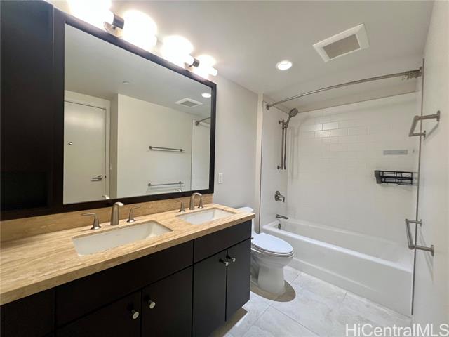 - RARE FIND! One entry door with two separate units! One is 3BD/2BA/2PK; the other is 2BD/2BA/2PK. 28th-floor corner residence at luxurious Waihonua offers stunning ocean, mountain & city views through floor-to-ceiling windows. Features walnut hardwood floors, granite countertops, Bosch appliances, motorized double shades & large walk-in closet. Resort-style amenities include concierge, theater, club room, pool, fitness center, BBQ pavilions & guest suites. Prime location next to Ala Moana Center & Ward Village, near Ala Moana Beach Park, Downtown & Waikiki. 2BD unit vacant; 3BD rented at $5,100/mo until 6/28/26. Live in one, rent the other!