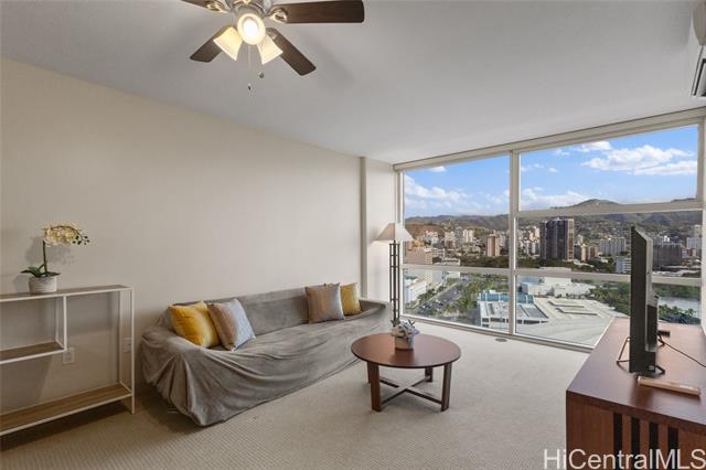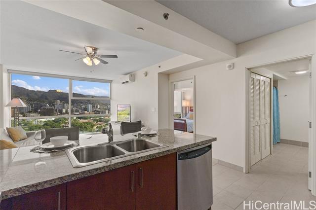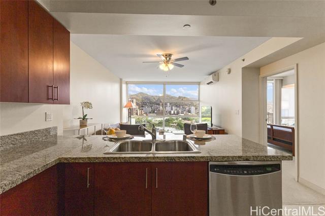 - Experience the pinnacle of urban island living in this beautifully maintained 1-bedroom, 1-bath residence on the 22nd floor of the prestigious 909 Kapiolani building. Spanning a comfortable 603 sq ft, this unit offers a bright and modern space with unobstructed mountain views. The unit includes one convenient, reserved parking stall. You're just moments away from the world-class shopping, dining, and entertainment of Ala Moana Center and Ward Village. Beyond the unit, residents enjoy resort-style living with an upgraded amenity deck featuring a host of luxuries. Indulge pool, relax in the hot tub, entertain at the BBQ pavilions. This unit perfectly blends the convenience of a central location with the sophistication and luxury of a high-rise retreat.