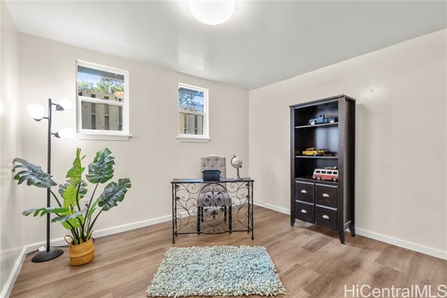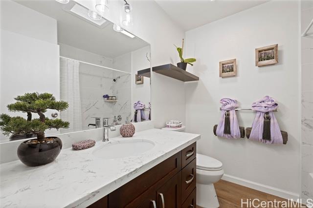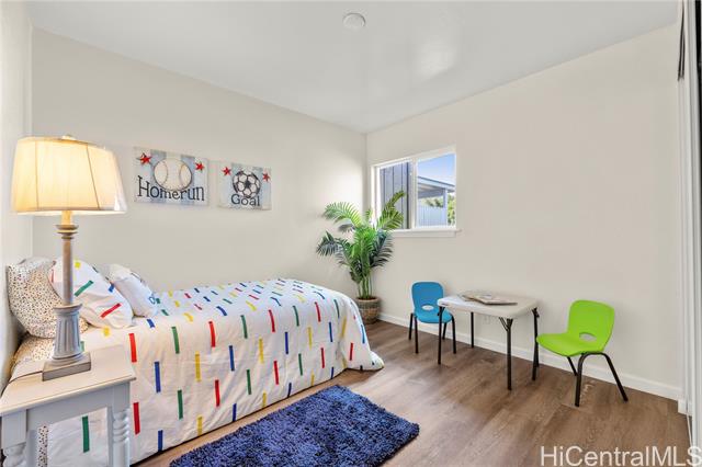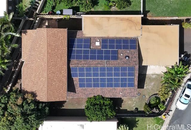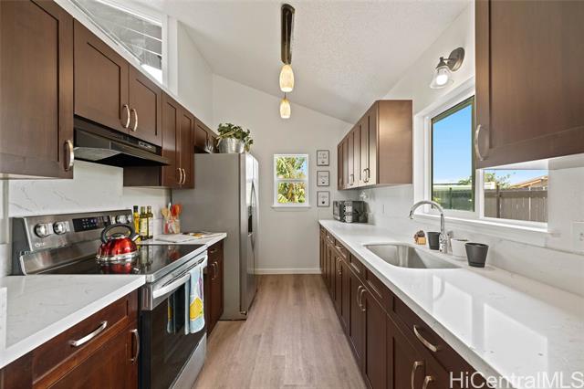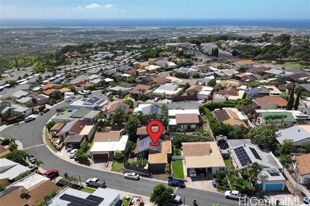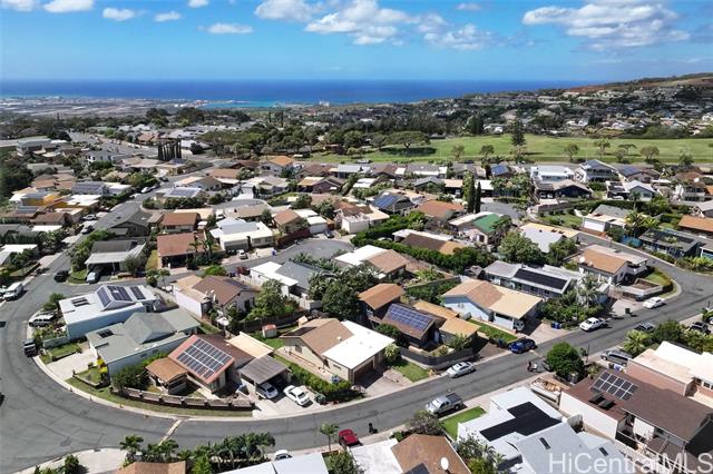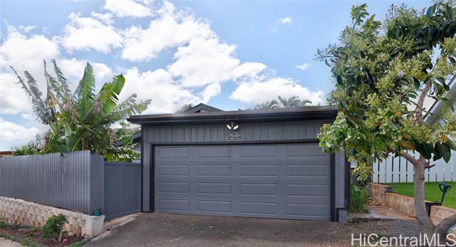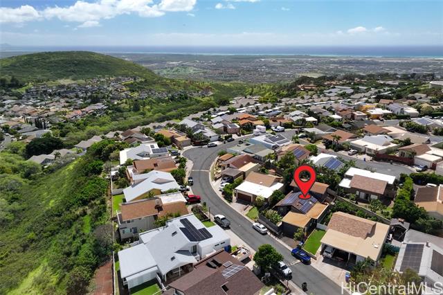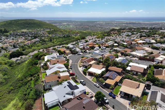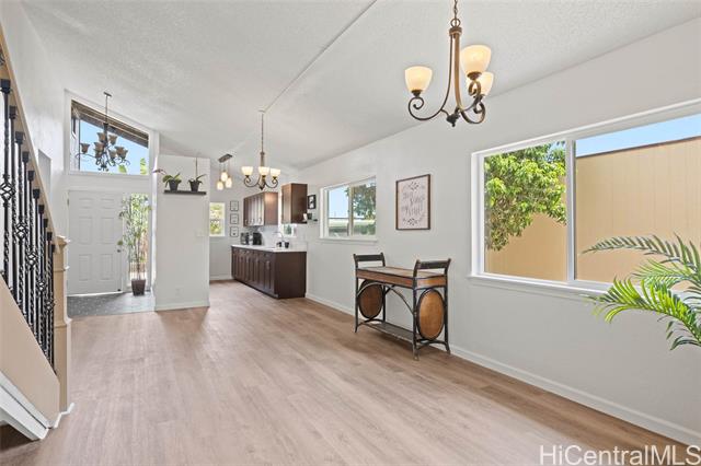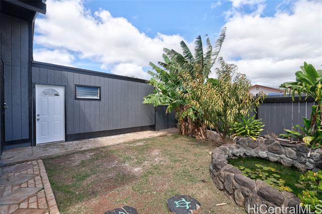 - Welcome home to breezy Makakilo! Discover this charming 5-bedroom, 2-bathroom gem that beautifully blends modern elegance with comfortable living.The home features an airy atmosphere, highlighted by cathedral ceilings. Enjoy expansive dining and living areas, along with double doors that lead to the backyard.With over $100,000 invested in renovations,you will appreciate the new front door, fully renovated kitchen and bathrooms, updated windows, new flooring, and a bonus room that can be transformed into an office or a fifth bedroom.Additional features include chandeliers, ceiling fans, ductless air conditioning, a tankless water heater, and 33 leased solar panels, as well as a newly constructed front yard fence.Experience breathtaking mountain views and a peek-a-boo ocean view from the spacious second-floor bedroom and sitting room/study.The beautifully landscaped grounds feature a fish pond and a variety of tropical fruit trees, including mango, lychee, peach, banana, and avocado.Conveniently located near Kapolei shopping centers, a variety of restaurants, and schools, this home offers easy access to the freeway for effortless commuting.VA assumable options are available at 2.75%.
