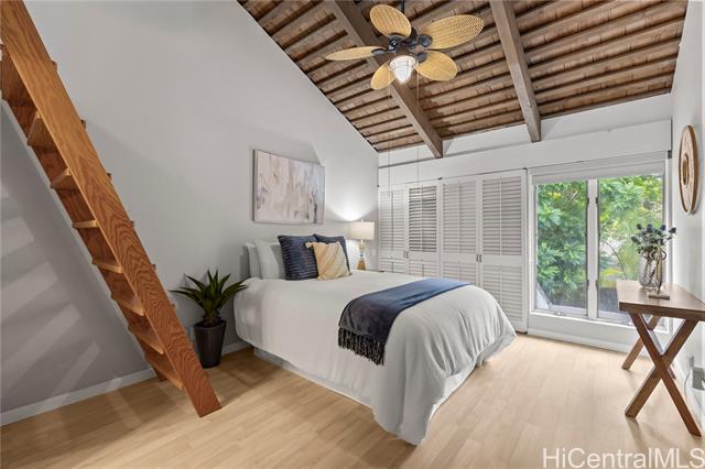 - Live steps from world-famous Kailua Beach in this rarely available 2-bedroom, 3-bath residence at The Windsurfer. Located directly across from soft white sand and turquoise waters, this home offers a serene retreat just minutes from Kailua Town and away from the hustle and bustle of Honolulu. Inside, you’ll find an inviting open kitchen with granite countertops, hardwood cabinetry, and a newly installed split A/C system throughout. The flexible split level layout features two bedrooms—each with its own full bath—plus a third full guest bath on the main level. A bonus loft adds even more versatility for office, or additional sleeping quarters. Your fenced front courtyard allows space for outdoor furniture and potted plants with a large closet where you can store gardening tools or recreational equipment. Relax on the spacious back lanai or take a short stroll to Kailua Beach Park, Lanikai Beach, Buzz’s Steakhouse, or Kalapawai Market. The Windsurfer is an intimate, boutique 10-unit community perfectly positioned for beach lovers and outdoor enthusiasts, with paddling, hiking, and windsurfing all close by. Experience the best of Kailua living—your own piece of paradise awaits.