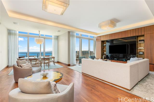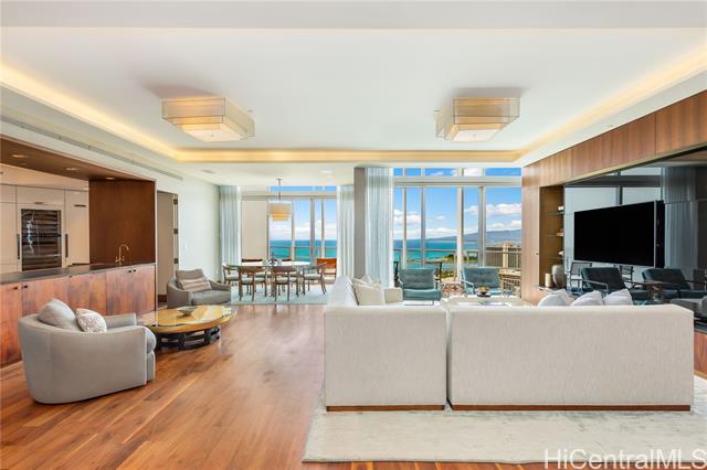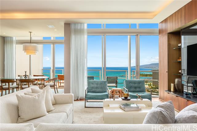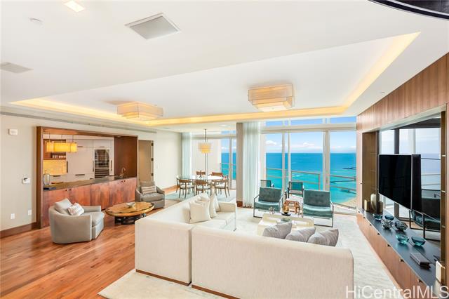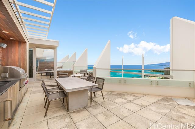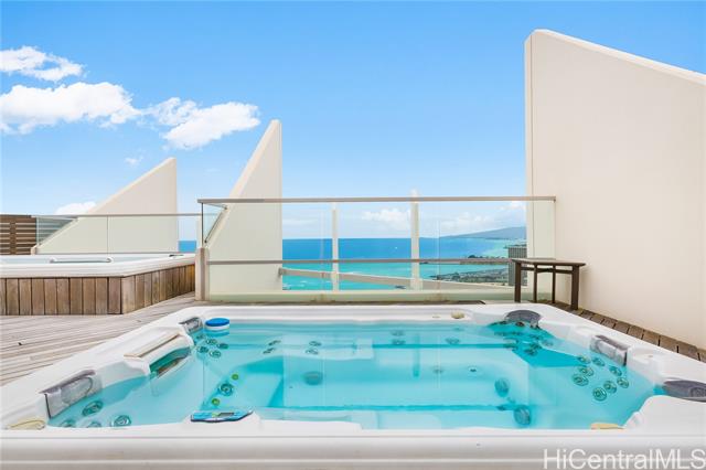 - Discover elevated luxury living at Kalai Waikiki, now part of Hilton’s prestigious LXR Resorts collection. This rare Penthouse features 10-foot ceilings, floor-to-ceiling glass, and sweeping, unobstructed ocean views that define world-class island living. Beautifully furnished with custom, high-end designer pieces, the residence blends refined comfort with contemporary elegance. The open living area highlights sophisticated wood paneling, premium finishes, and a dramatic spiral staircase leading to your exclusive private rooftop terrace with a plunge pool, Jacuzzi, and built-in BBQ—an amenity seldom available in Waikiki. As part of its LXR rebranding, Kalai Waikiki is undergoing a full renovation of all common areas, scheduled for completion in early 2026. The transformation will introduce a fully reimagined luxury resort environment, enhancing the appeal and long-term value of this Penthouse. Offering exceptional privacy, elevated design, and seamless resort access in the heart of Waikiki, this one-of-a-kind residence stands as a premier opportunity within Kalai Waikiki’s newly defined ultra-luxury experience.