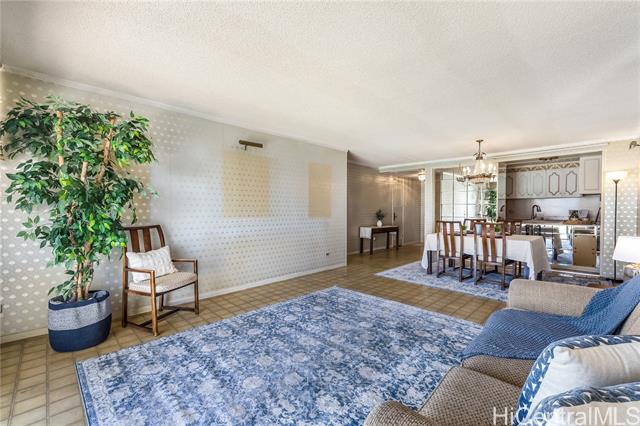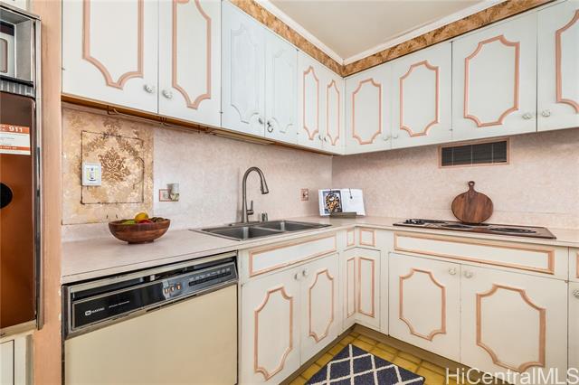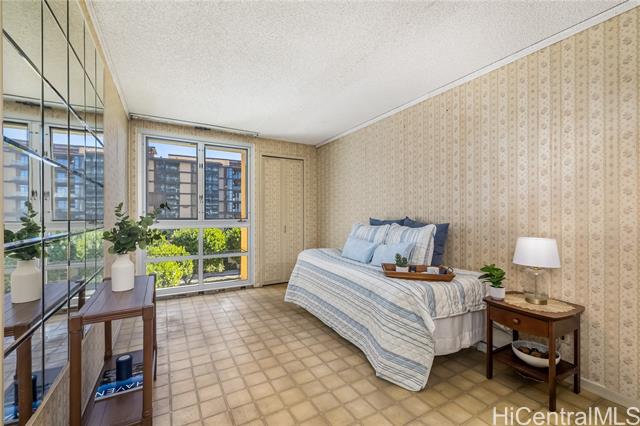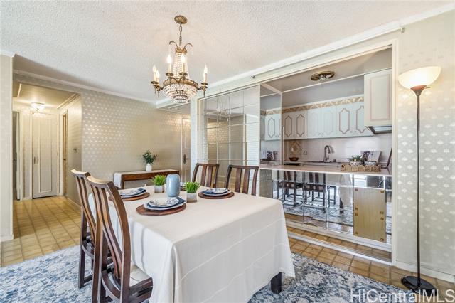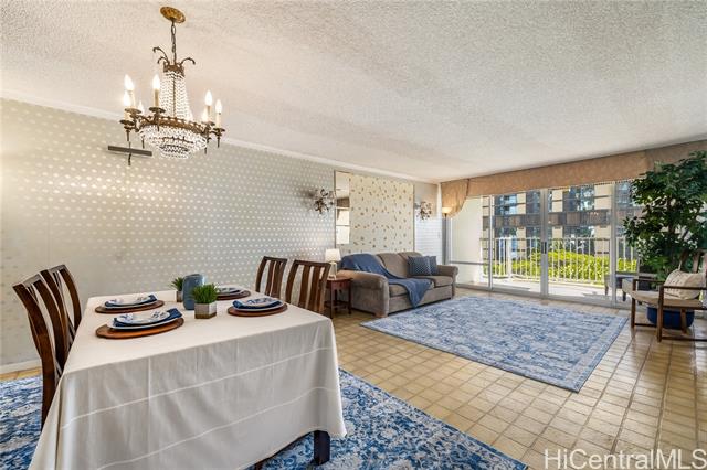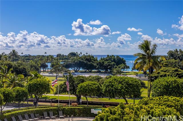 - Recently appraised at $805,000 (11/07/2025) and now attractively priced, this residence offers the lowest price per square foot currently available at 1350 Ala Moana. Located on the Diamond Head side, this two-bedroom, two-bath home features one of the building’s larger floor plans at 1,143 sq. ft. The original owner valued its serene outlook above garden-level trees and its cooler side positioning. Interior details include classic wallpaper, mirrored accents, and a chandelier that add timeless charm. Perfectly situated across from Ala Moana Shopping Center and Ala Moana Beach Park, the home provides unmatched convenience and lifestyle. Enjoy east-facing views of the landscaped garden plaza, ocean, and park. Designed by renowned architect Minoru Yamasaki, 1350 Ala Moana is a landmark building celebrated for its elegance and functionality. Unit 606 includes one covered parking stall and a tall storage locker, both located on the first floor. Residents enjoy a staffed lobby with four elevators, 24-hour secured access, pool, hot tub, fitness center, BBQ areas, and a reservable party room with kitchen.