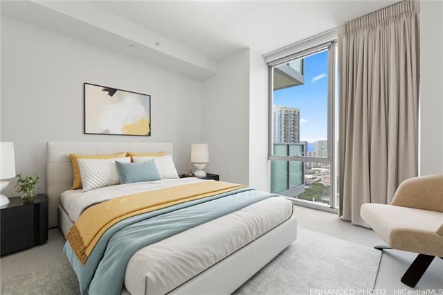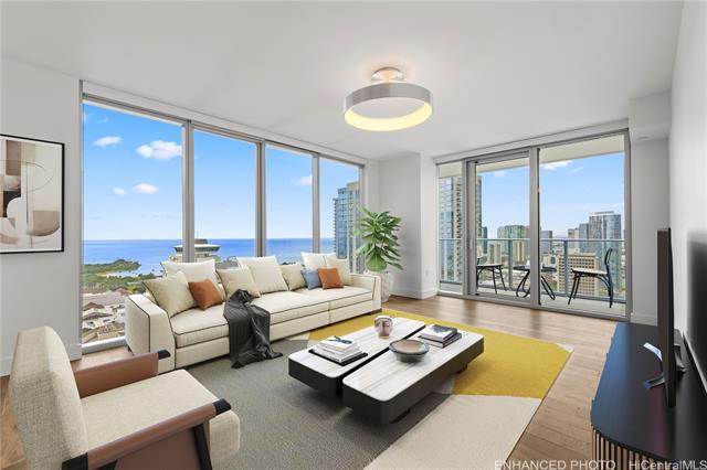 - Discover luxury and convenience in this premium 2-bedroom, 2-bathroom corner residence located on a high floor of the highly sought-after Azure Ala Moana. This spacious unit includes two side-by-side covered parking stalls and a private storage locker in the garage. Enjoy breathtaking ocean and sunset views from your living room, complemented by roller shades throughout and blackout curtains in all bedrooms. Kitchen features top-of-the-line Sub-Zero, Wolf, and Bosch appliances, perfect for home chefs and entertainers alike. Just a short 5–10 minute distance to Ala Moana Center, Ala Moana Beach Park, Target, Sam’s Club, and countless dining and shopping options, this home places you right in the center of Honolulu’s vibrant lifestyle. Resort-style amenities include a pool and jacuzzi, BBQ pavilions, a movie theater, fitness center, bicycle and surfboard storage, guest suites, and high-speed Wi-Fi throughout the amenity areas. The building also offers secured entry and 24-hour concierge and reception services for your comfort and peace of mind.