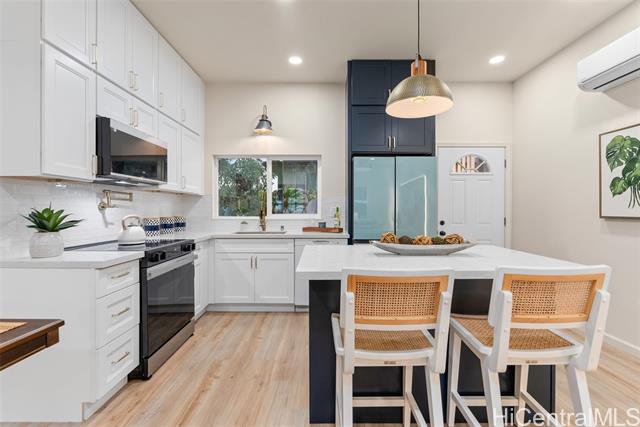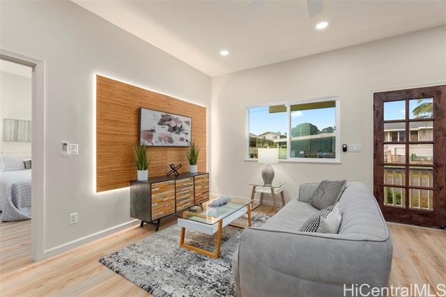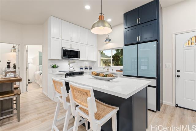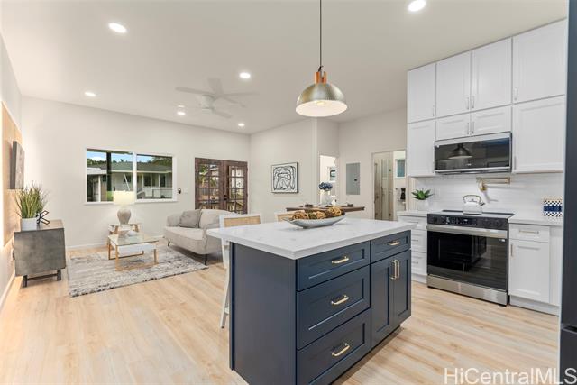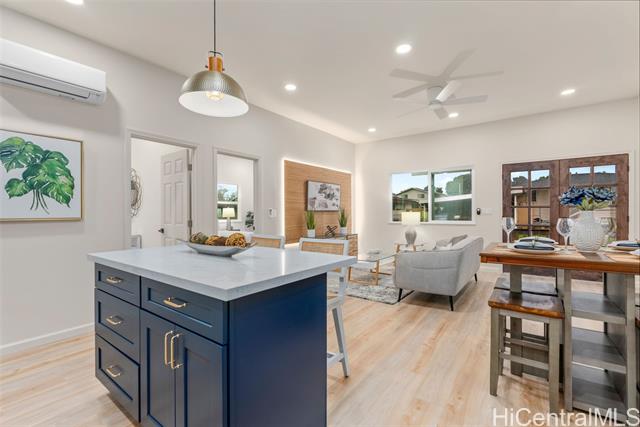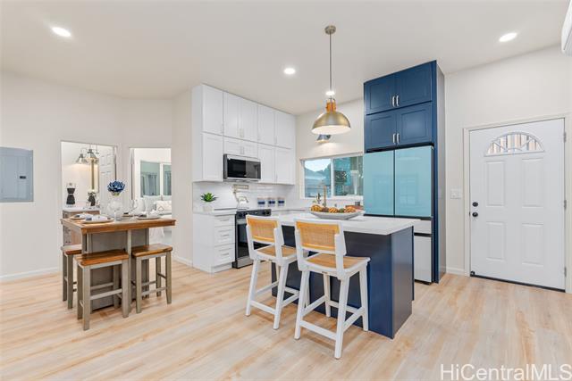 - Discover this beautifully remodeled single-family home in the heart of Wahiawa, offering modern comfort and flexible living options. The main home features 4 bedrooms and 2 full bathrooms, an open-concept living area, brand-new appliances, and tasteful contemporary finishes throughout. A bonus room provides extra space for a home office, gym, or workshop. A separate studio in the back offers great potential for extended family or guests. The level lot provides parking for up to five cars, and a mature orange tree adds a touch of island charm to the backyard. Conveniently located near schools, shopping, and Schofield Barracks, this move-in-ready home blends functionality, flexibility, and fresh island style.