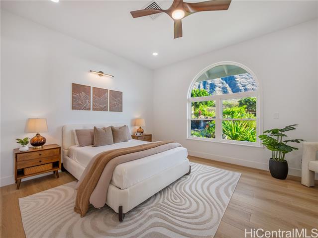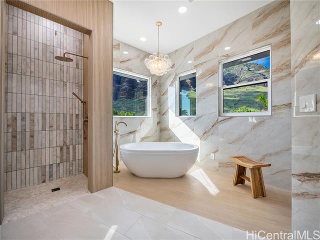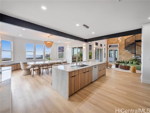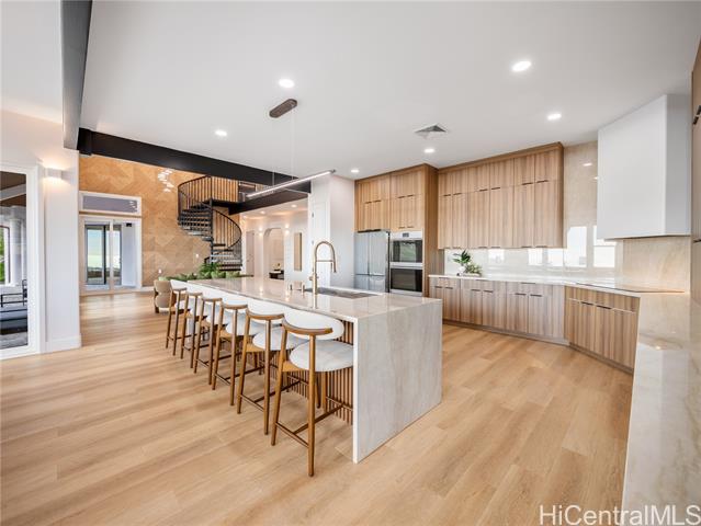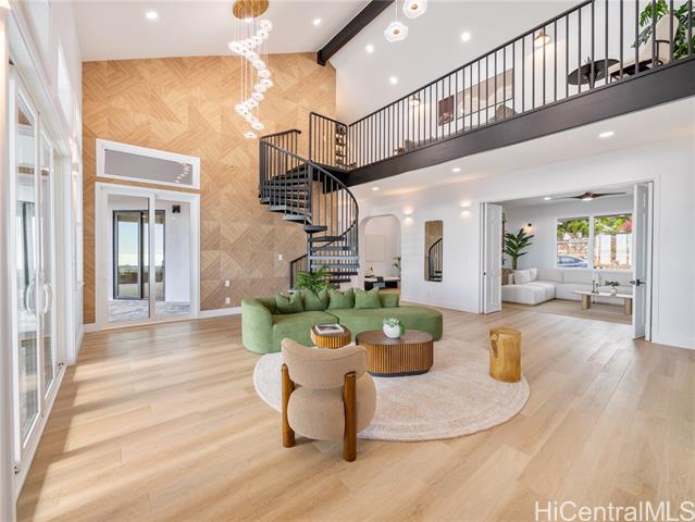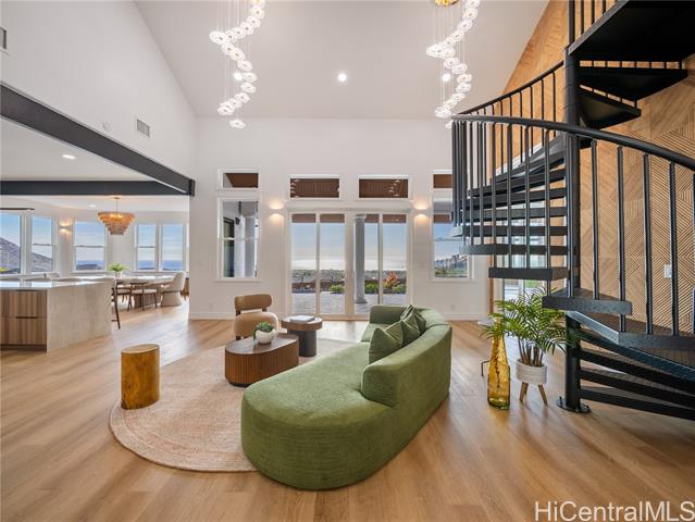 - Nestled within the prestigious gated community of Maunaolu Estates, this exceptional island retreat offers a rare blend of modern elegance and natural Hawaiian beauty. Spanning over one acre of lush, landscaped grounds, this single level 4-bedroom, 4-bathroom estate is designed for effortless indoor-outdoor living and grand entertaining. Inside, nearly 3,500 sq. ft. of refined space showcases high ceilings, oversized windows, and sliding doors that fill the home with natural light and frame breathtaking mountain and ocean views. The chef’s kitchen features new Café appliances, custom cabinetry, and a handcrafted dining table for twelve — perfect for gatherings large or intimate. The primary suite offers a serene sanctuary with a spa-inspired bath, while a spiral staircase leads to a loft with wet bar and wine fridge — ideal for relaxing or entertaining. Outdoors, enjoy a custom waterfall, lush landscaping, and a resort-style pool with water slide and spa. The 900+ sq. ft. 3-car garage with double-sided doors blends function and luxury — embodying the ultimate Hawai‘i lifestyle.