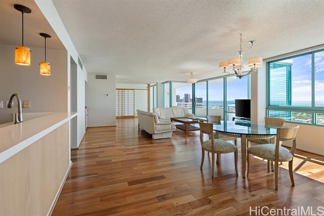 - Renovated in March 2025, Junior Penthouse 27A at Uraku Tower is a rare offering that epitomizes the perfect blend of luxury, comfort, and panoramic island living. Spanning 2,255 square feet, this expansive 3-bedroom, 2.5-bath residence features brand-new engineered hardwood flooring, sleek Toto washlets, and motorized blinds throughout. Thoughtfully designed for relaxation and convenience, the home includes a private in-unit sauna, a traditional Japanese-style tatami area, and three lanais totaling 413 square feet, offering sweeping 270-degree views from the ocean to the mountains. Perfectly positioned next to Ala Moana Shopping Center in the vibrant heart of Honolulu, Uraku Tower is a premier full-service residence providing 24-hour concierge and front desk service, complimentary limousine transportation, and weekly maid service. Experience refined island living at its finest in one of Honolulu’s most coveted neighborhoods.